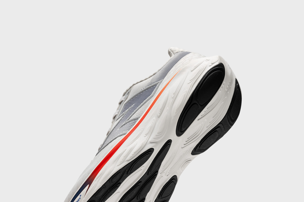 中底设计基于前代的缓震脚感,针对关键部位的中底几何进行优化调校,加宽中底、加高侧墙。