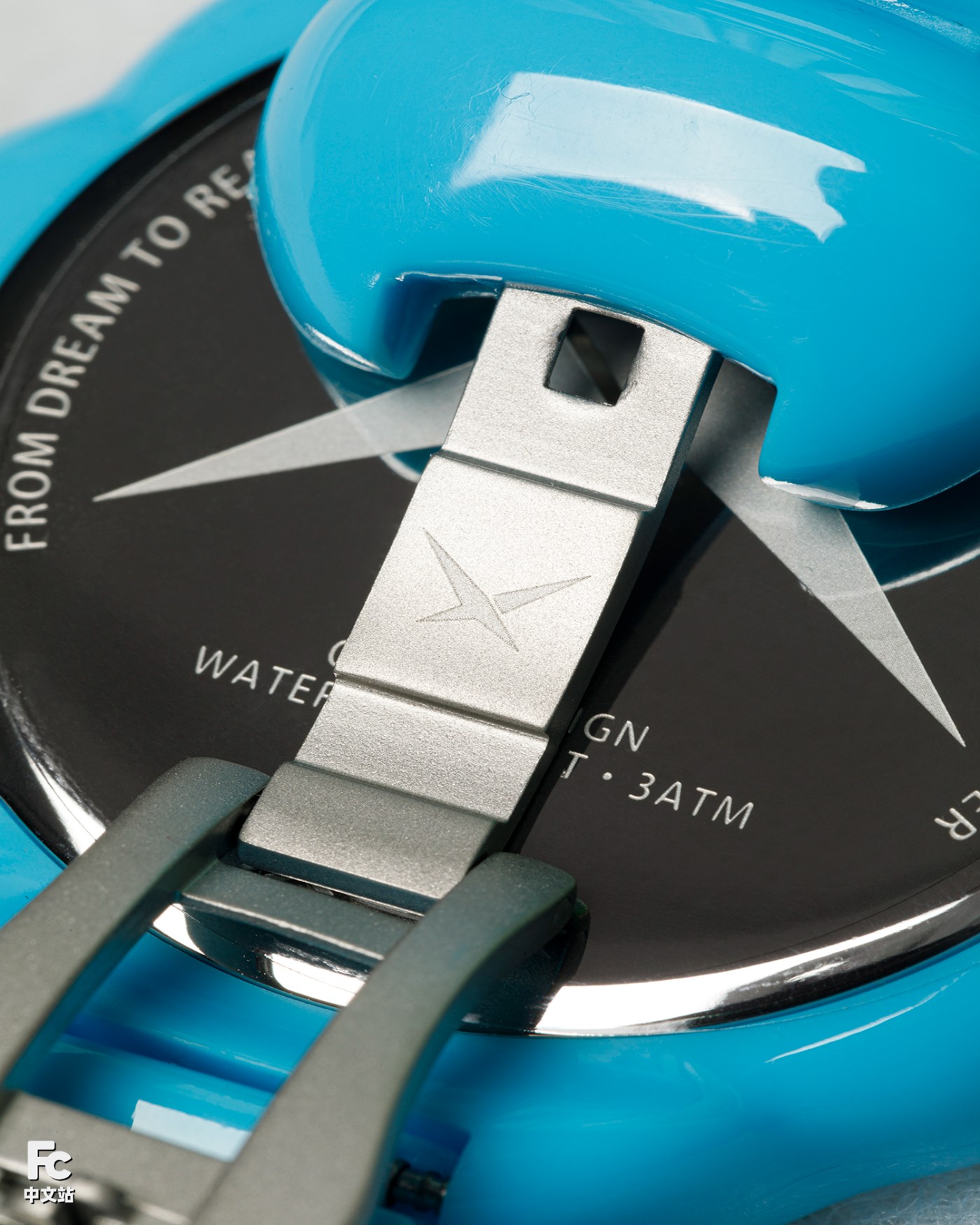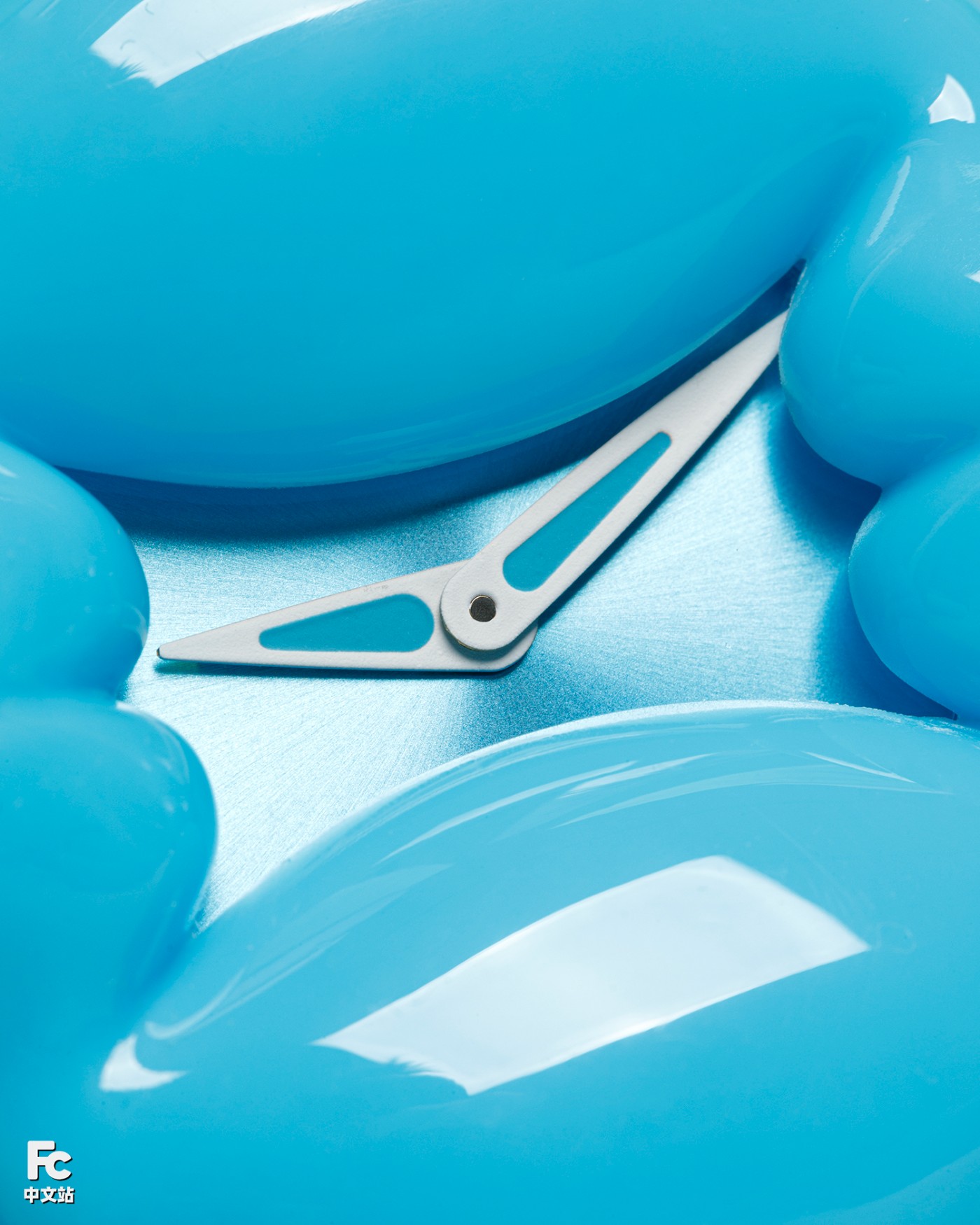被憨憨鼓鼓外壳挤压的表盘,采用冰蓝的金属质感与传统指针构建。