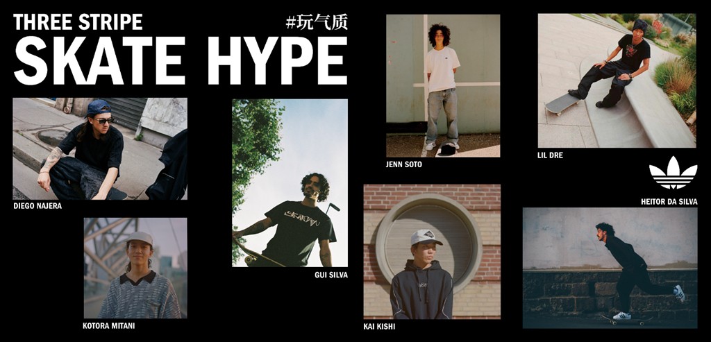 近日,adidas Skateboarding 宣布携手全球顶尖滑手开启中国 “THREE STRIPE SKATE HYPE” 活动。