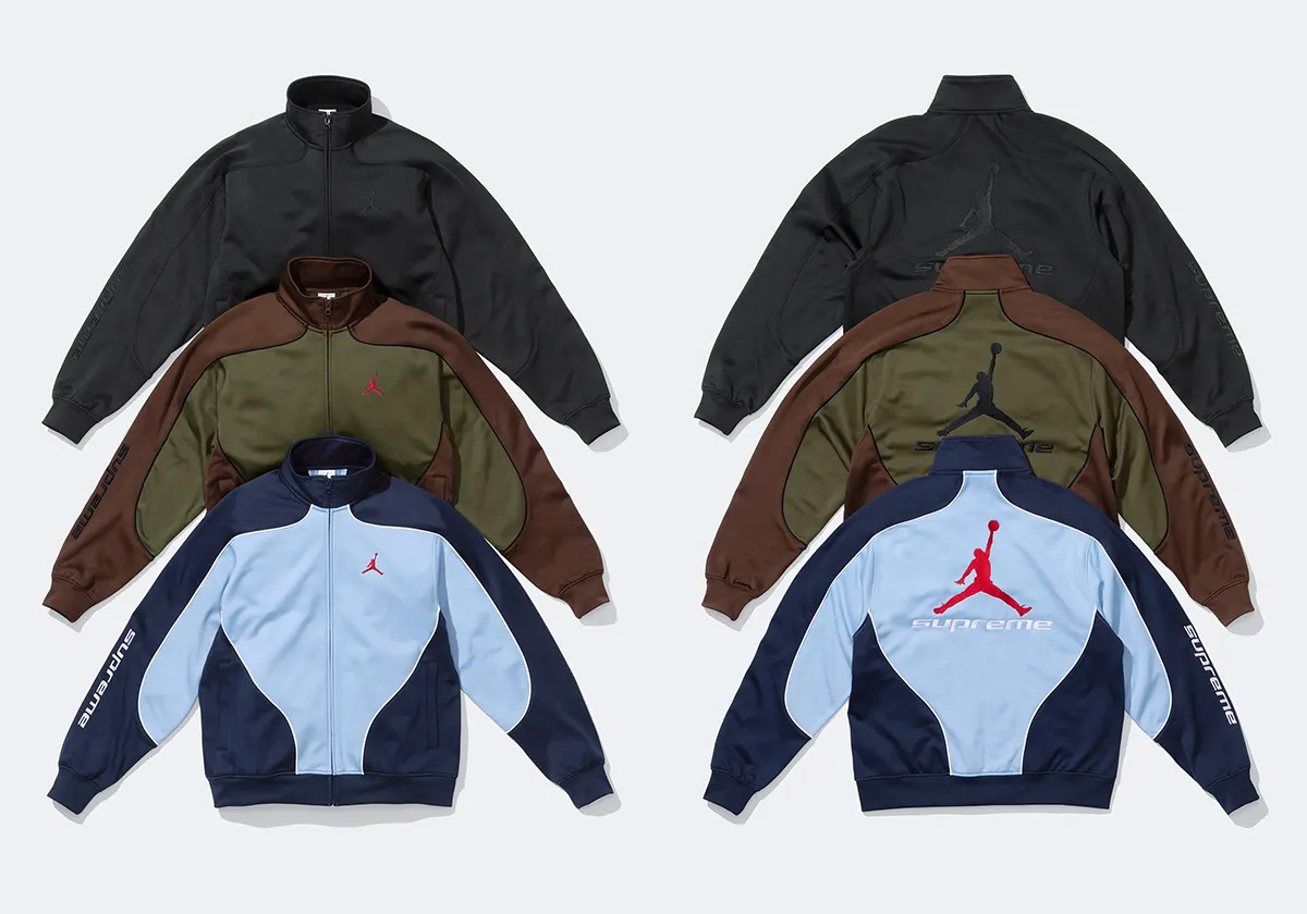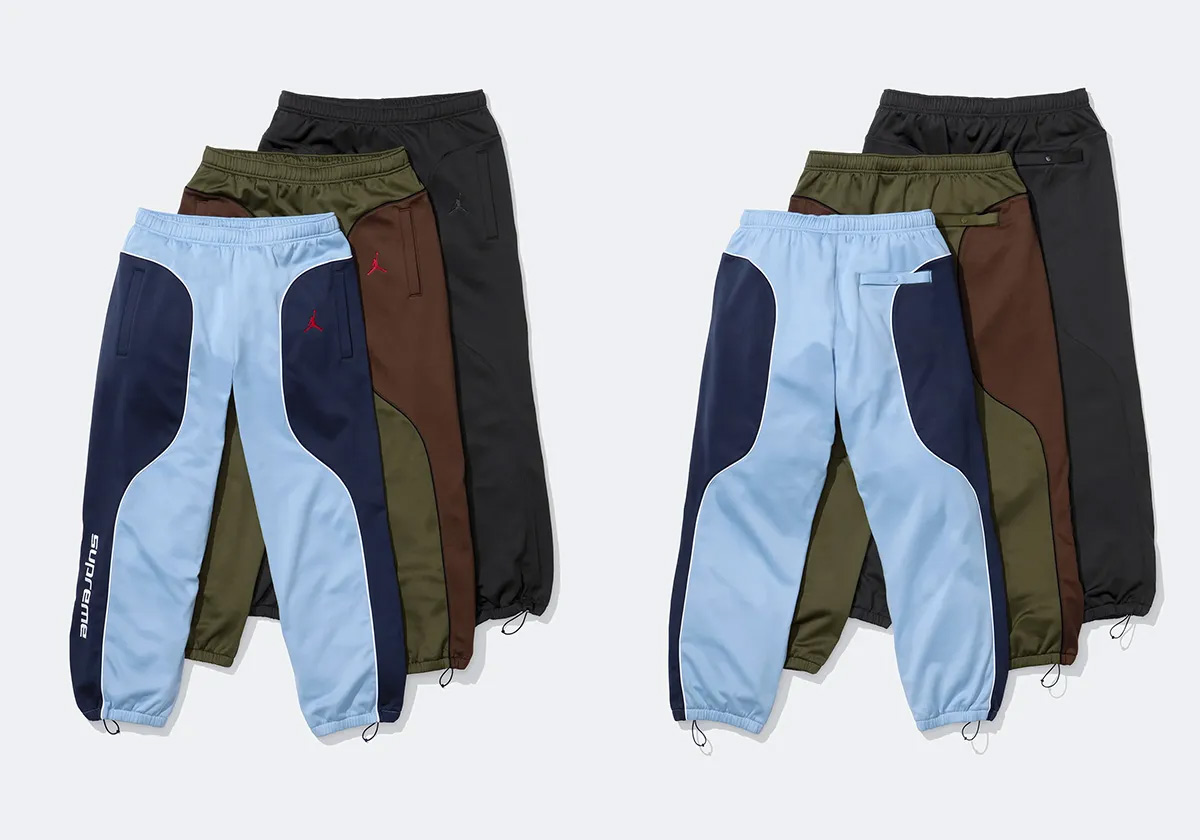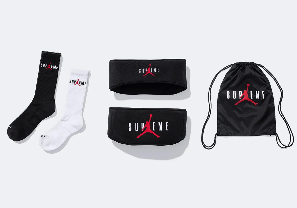 除此之外,还有球衣、运动外套、运动长裤,还有一颗带有 Supreme x Jordan 标志的篮球。