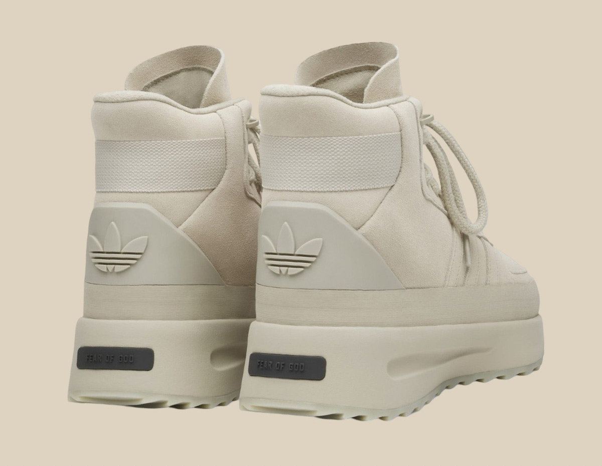 后跟的三叶草造型和 FEAR OF GOD 铭牌展现了这款新品的身份,整体采用单色调贯穿,无论深色配色还是浅色款,都能很容易的进行穿着搭配。