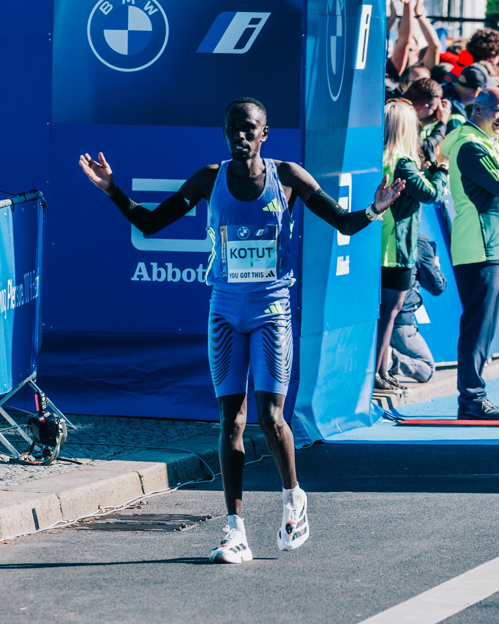 最终,ADIZERO ADIOS PRO 4 帮助肯尼亚选手 Cybrian Kotut 以 2 小时 03 分 22 秒的优异成绩摘得亚军。