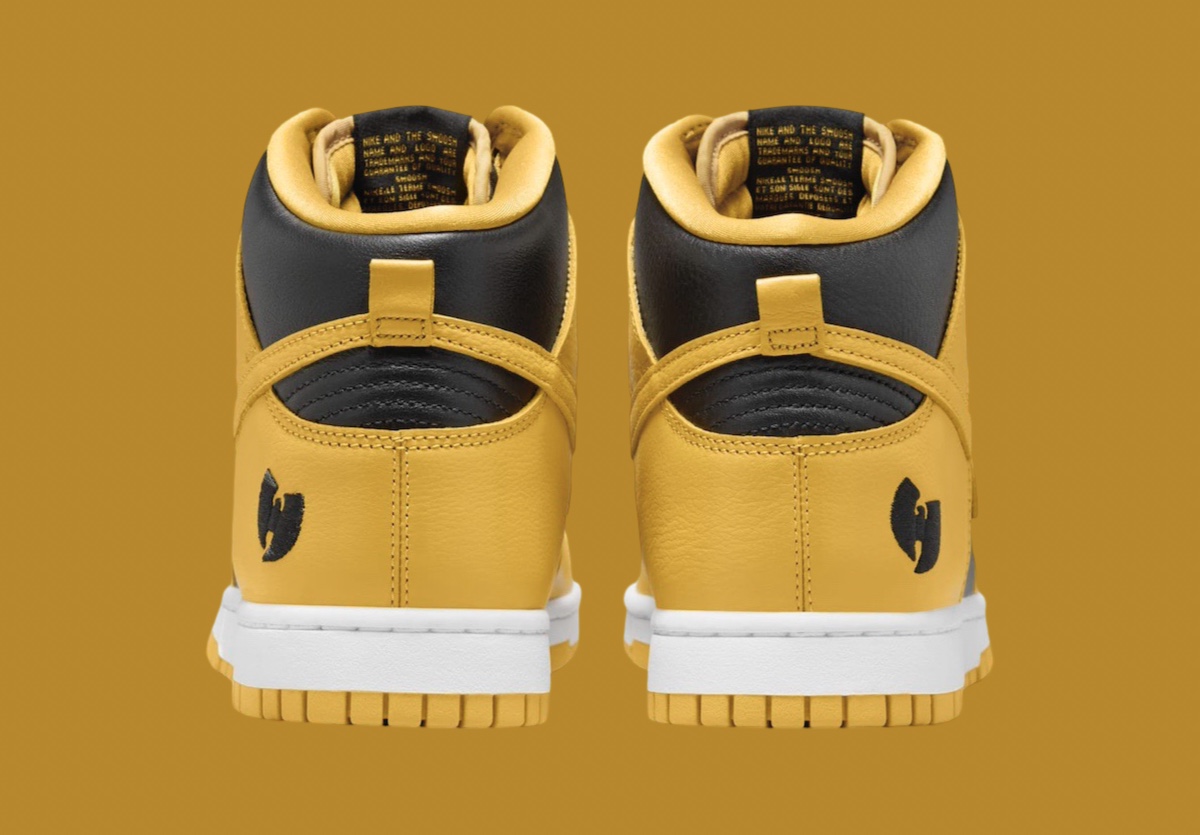 不仅是配色上采用说唱团体的标志性颜色黑黄呈现,细节方面更彰显了鞋款身份,让这双鞋与其它黑黄配色 Dunk 区分开来。