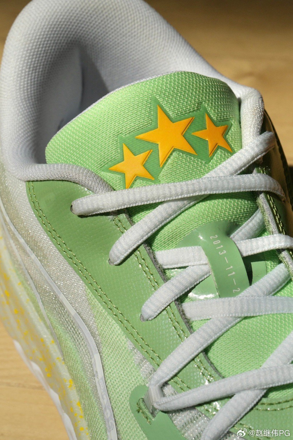 外观的浅绿色致敬辽宁队的复古球衣,鞋舌的三颗星则代表三连冠伟业。