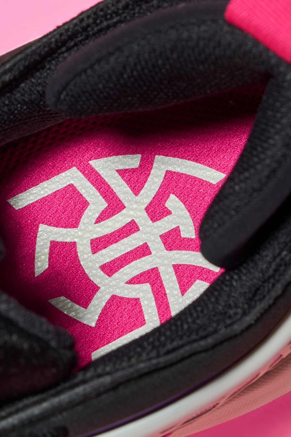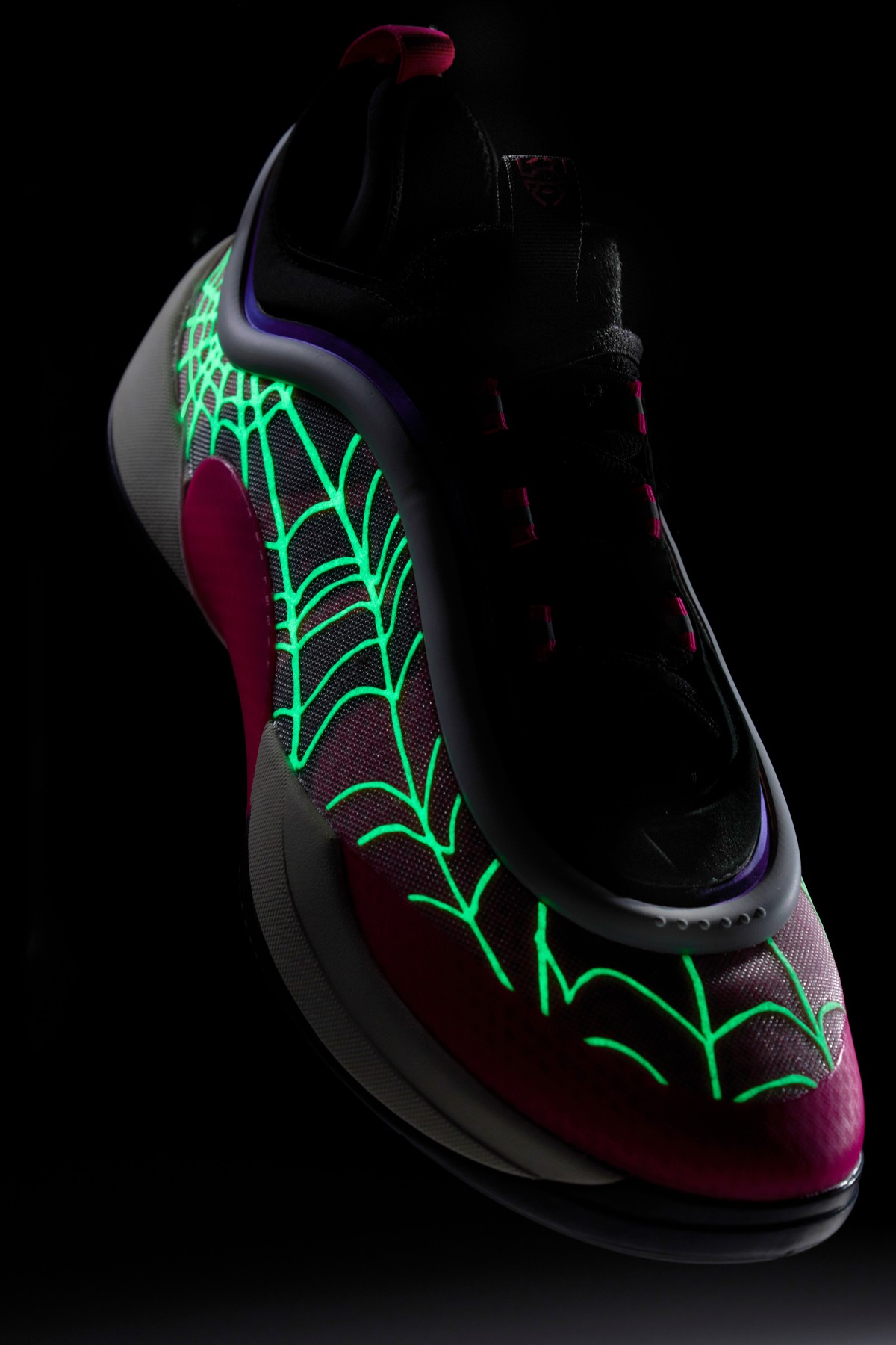 首先配色方案就非常吸睛,蜘蛛女 Spider Gwen专属的粉红色调,注入象征米切尔“蜘蛛侠”外号的独特蜘蛛网设计,无论是平日上脚的活力颜值,还是弱光环境中的高亮释放,都称得上是今年万圣节主题配色的难得精品!