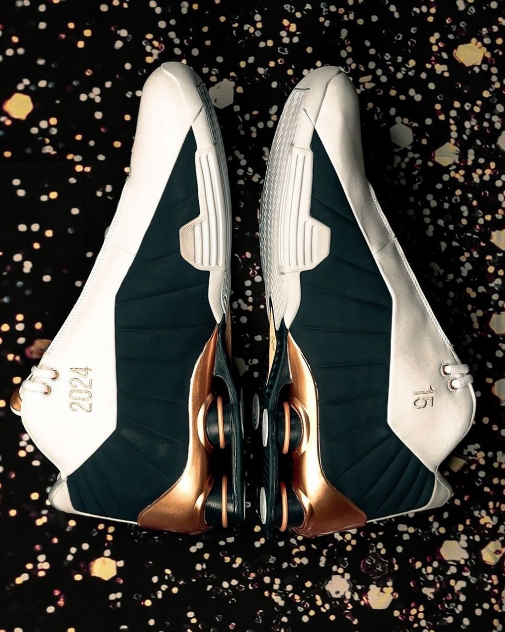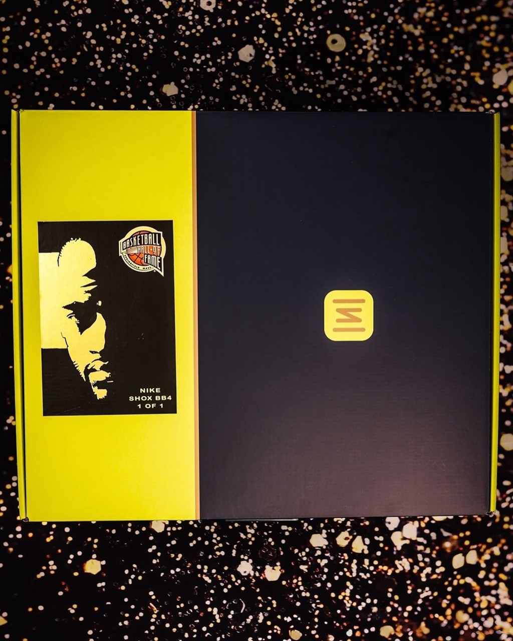 里面包含两双专门制作的特殊配色 Shox BB4,结合了猛龙、篮网,以及名人堂的金色元素。