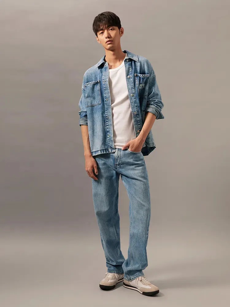 这件牛仔衬衫式外套的宽松版型带来了松弛感,雪花石洗工艺则让上身更有复古味道。牛仔单品自带随性气质,成套穿更时髦。