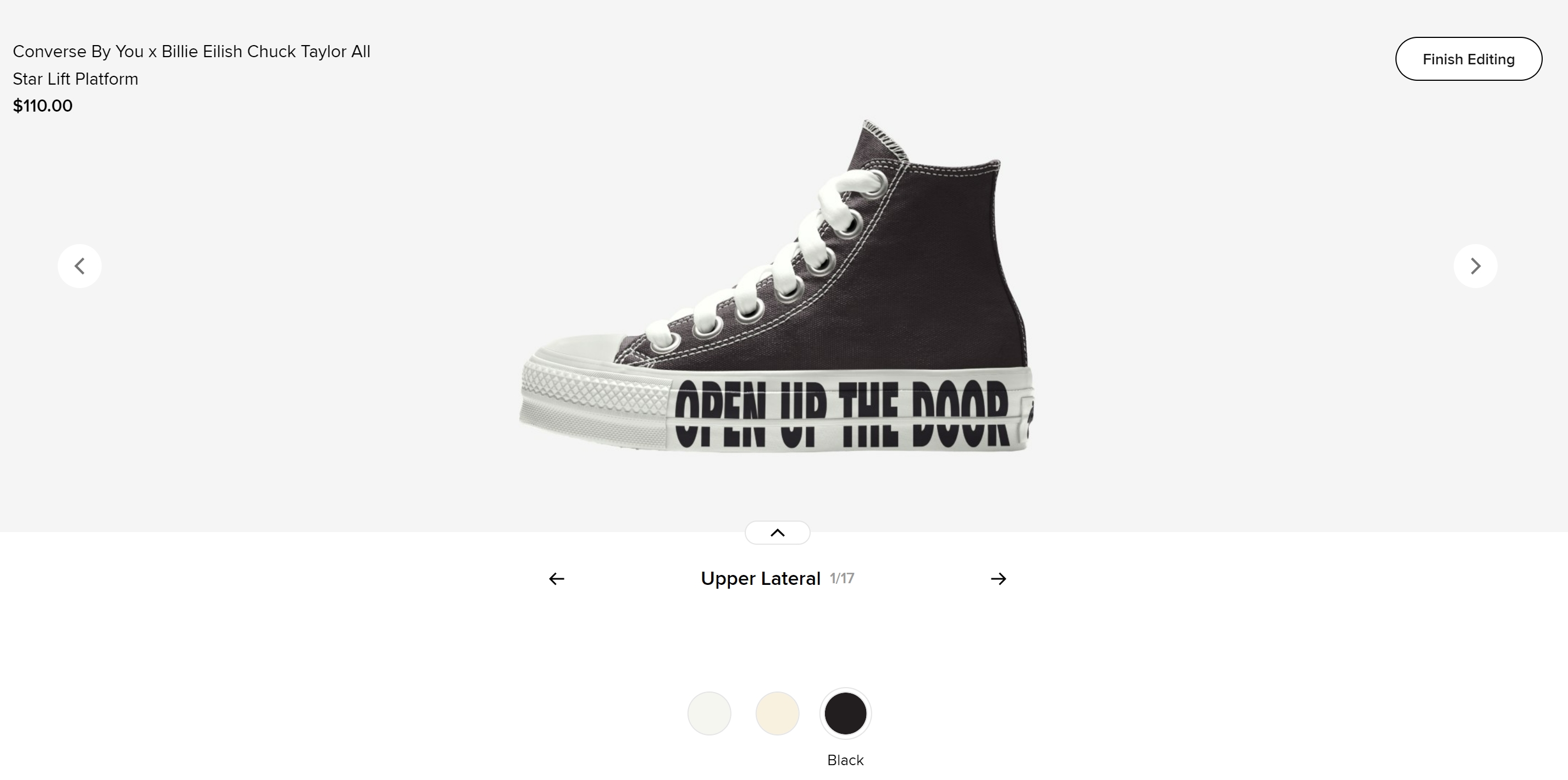 其中 $110 美元款为厚底鞋型 Lift Platform,$100 美元的则是大家经常见到的鞋型。