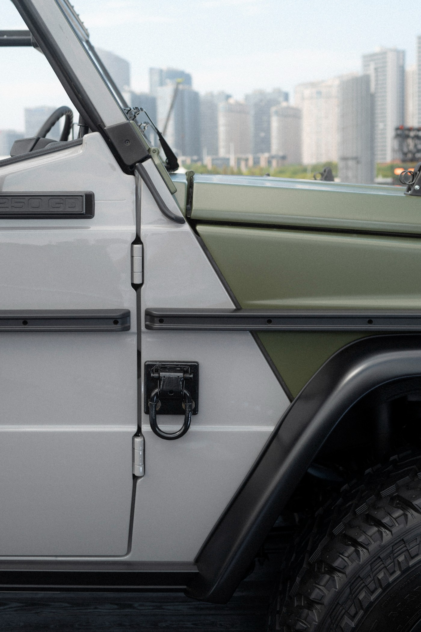 这辆 G450d 拥有绿色和灰色的拼色漆面。