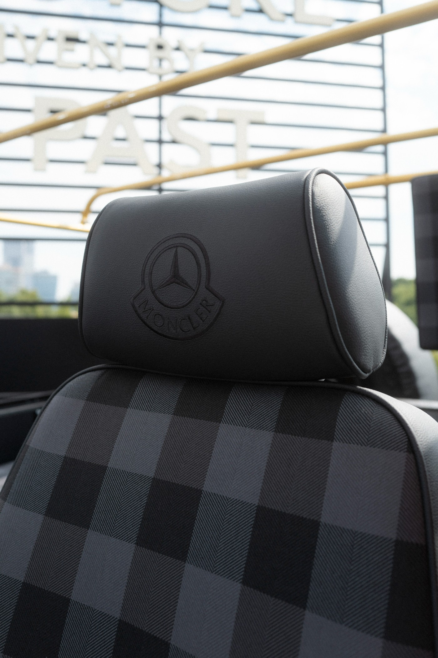 车顶改为 Moncler 蓬松的羽绒材质,头枕位置也有彰显身份的印花。