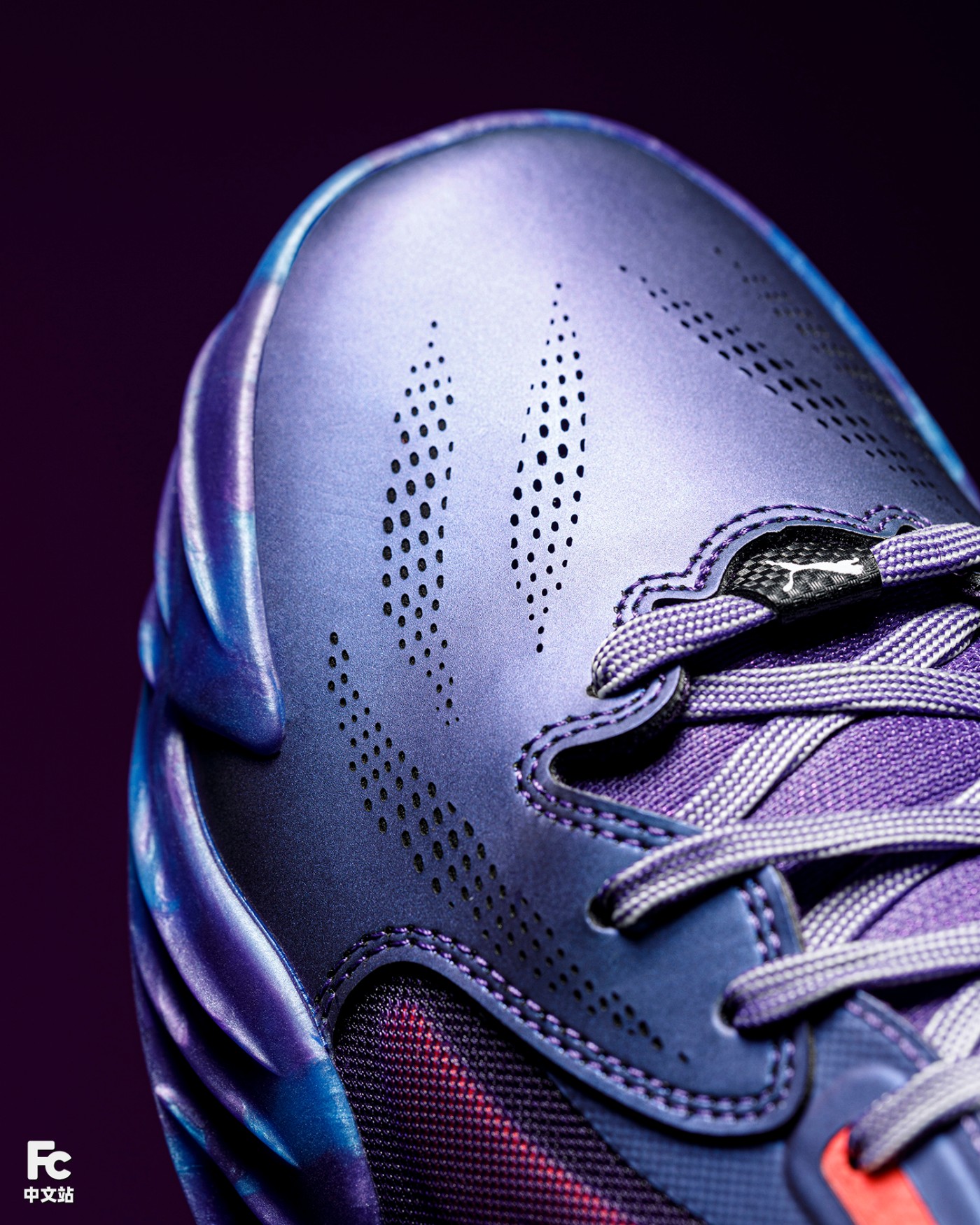 PUMA Logo 恰到好处的融入到电镀效果的「环绕 TPU 稳定器」上,细看还覆盖有闪粉元素。