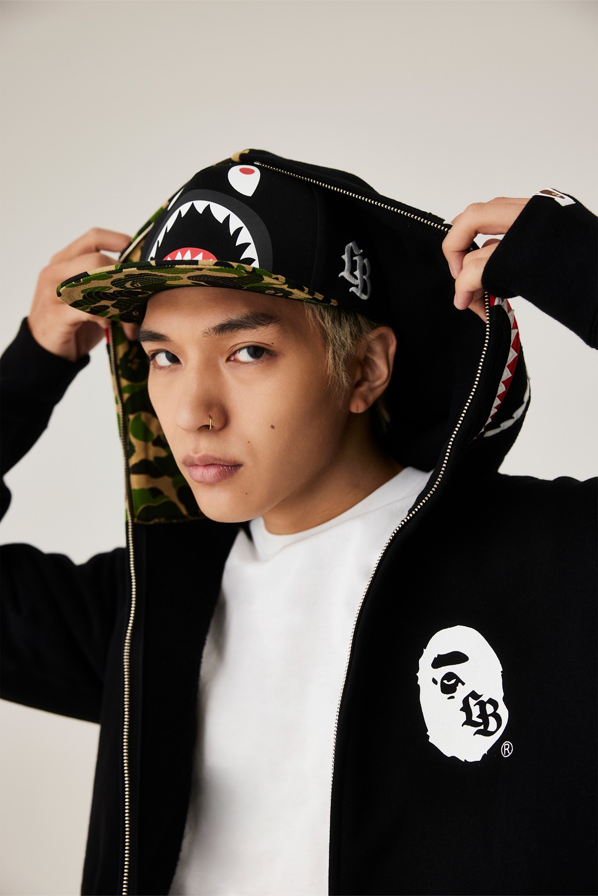 通体注入 BAPE® 签名式迷彩图腾、猿人头 LOGO 等极具辨识度的视觉符号。