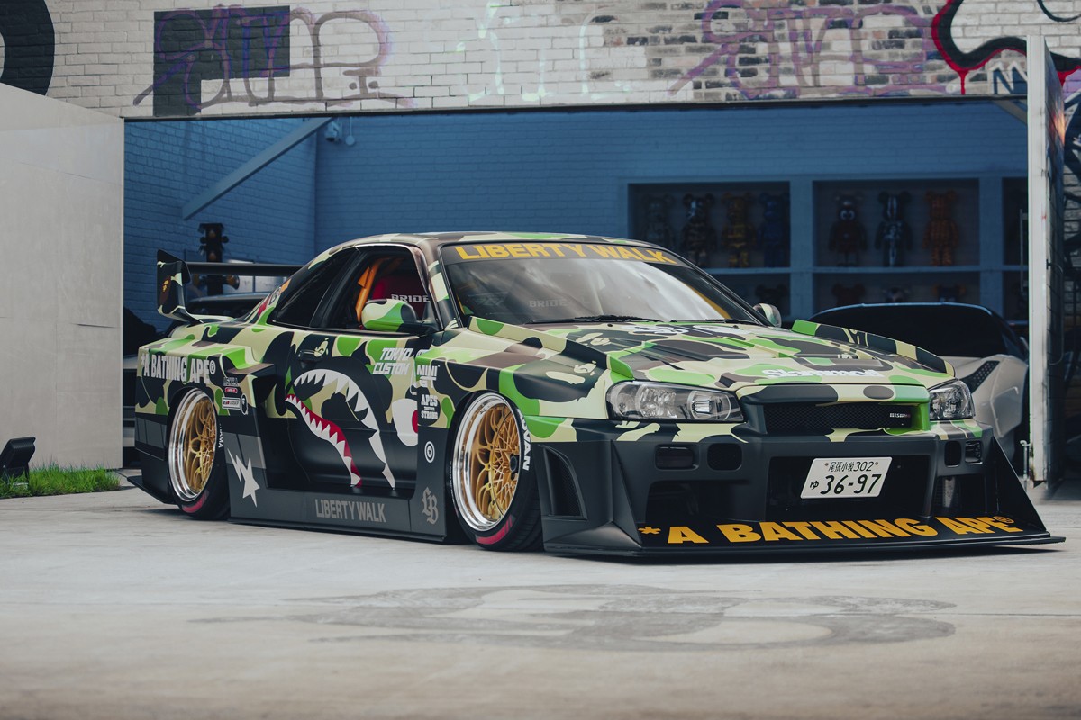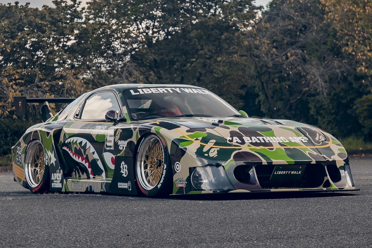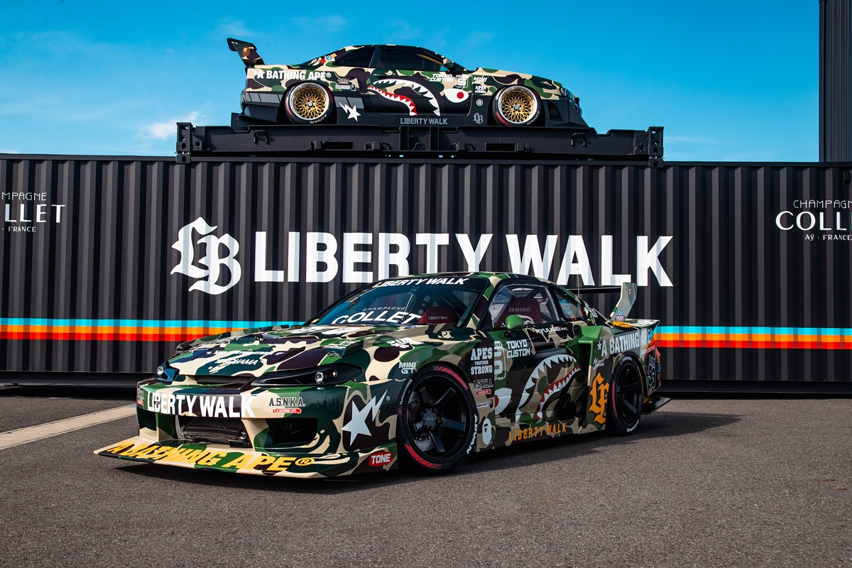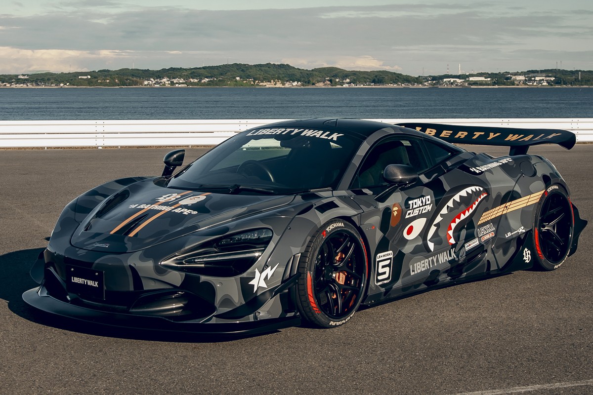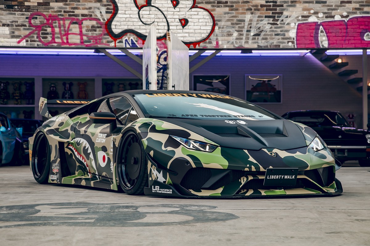 BAPE® 携手全球知名汽车改装品牌 LIBERTY WALK(LBWK)展开跨界合作,推出 BAPE® 定制版超级跑车和高端服饰系列。