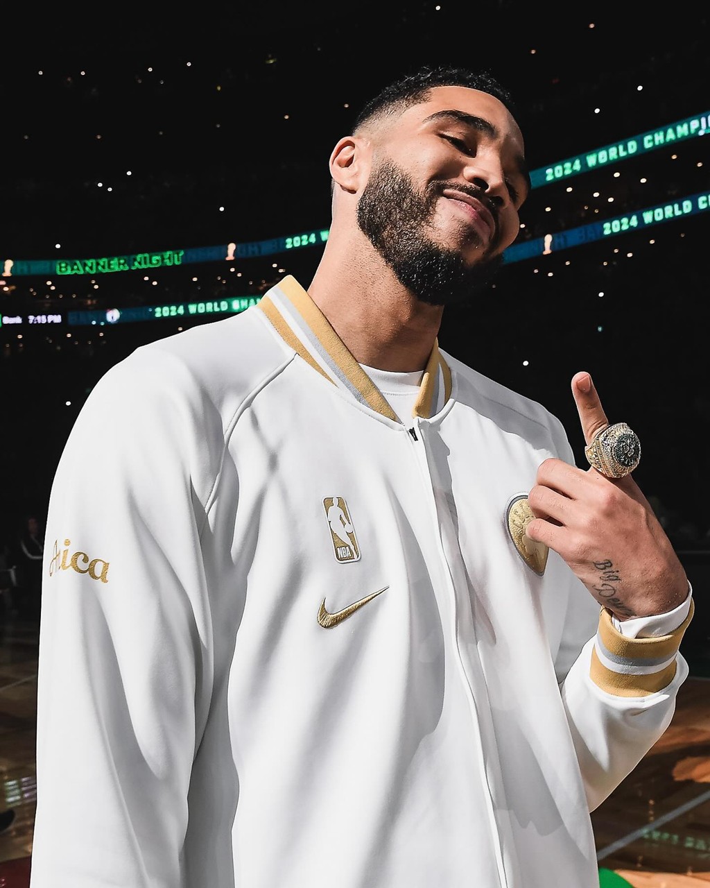 凯尔特人的冠军戒指也正式揭晓,细节可谓拉满,处处都彰显着绿军荣耀。
