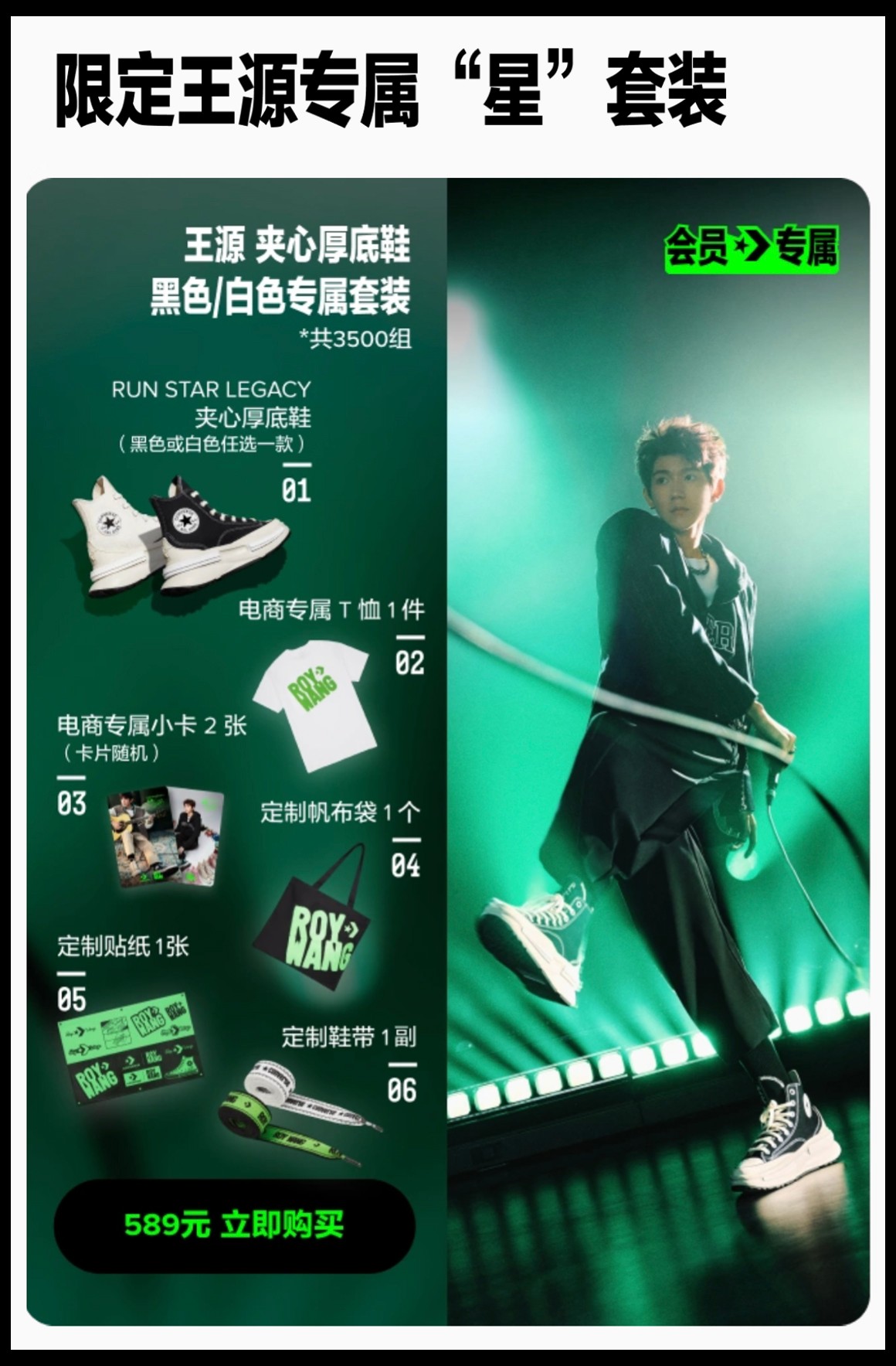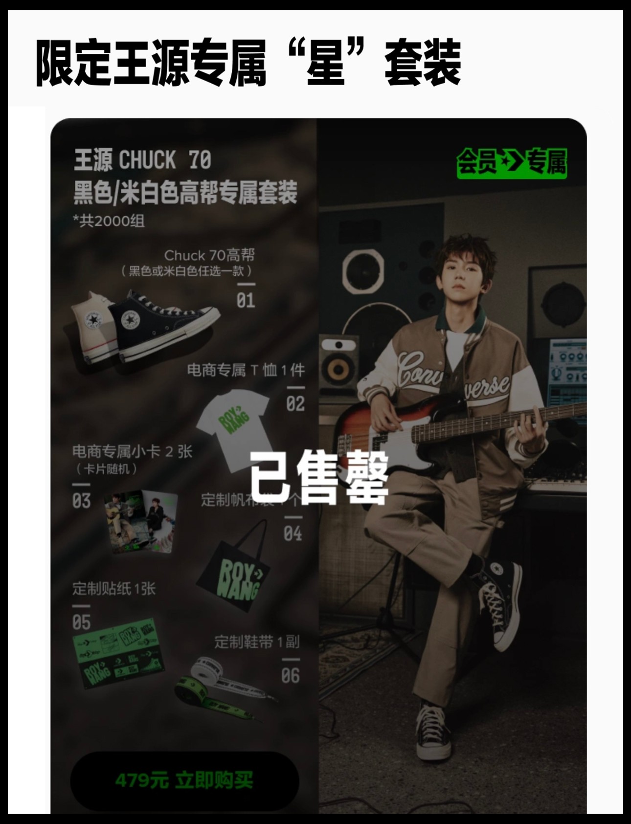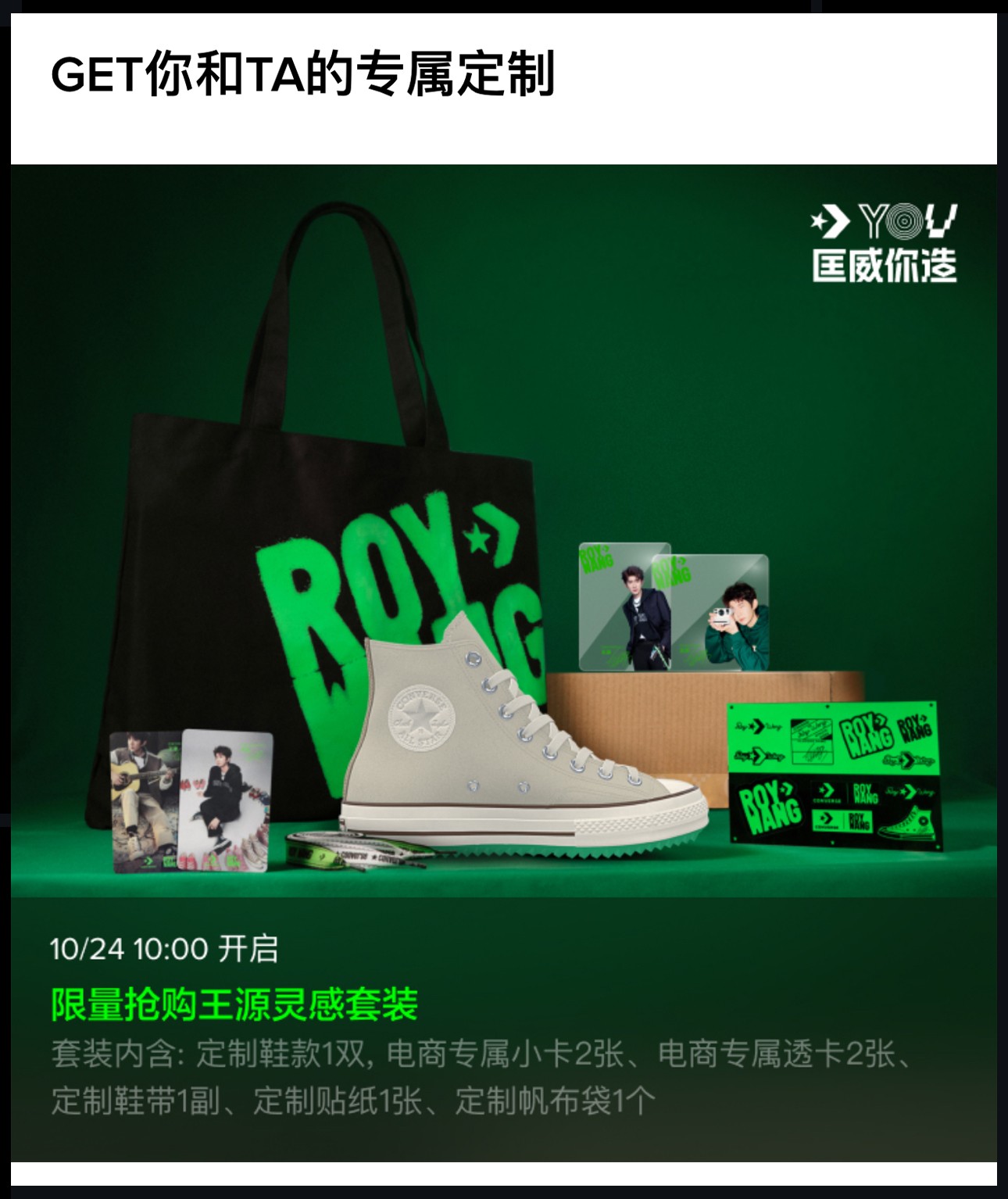 今早 Converse 匡威正式官宣,王源成为全球品牌代言人! 双方都在社交媒体第一时间分享了消息,并发布多款造型 Look。 与此同时,王源上身的 Converse 同款服饰、限定鞋款、限量套装也已正式上线。 Converse 还特别准备了多款王源专属定制周边、鞋款等,其中不少都瞬间售罄。 相信在未来的合作中,王源除了带来更多 Converse 经典产品的帅气演绎外,「个人专属系列」自然也不会缺席,希望能够尽快与广大粉丝见面。 via:converse/TFBOYS-王源
