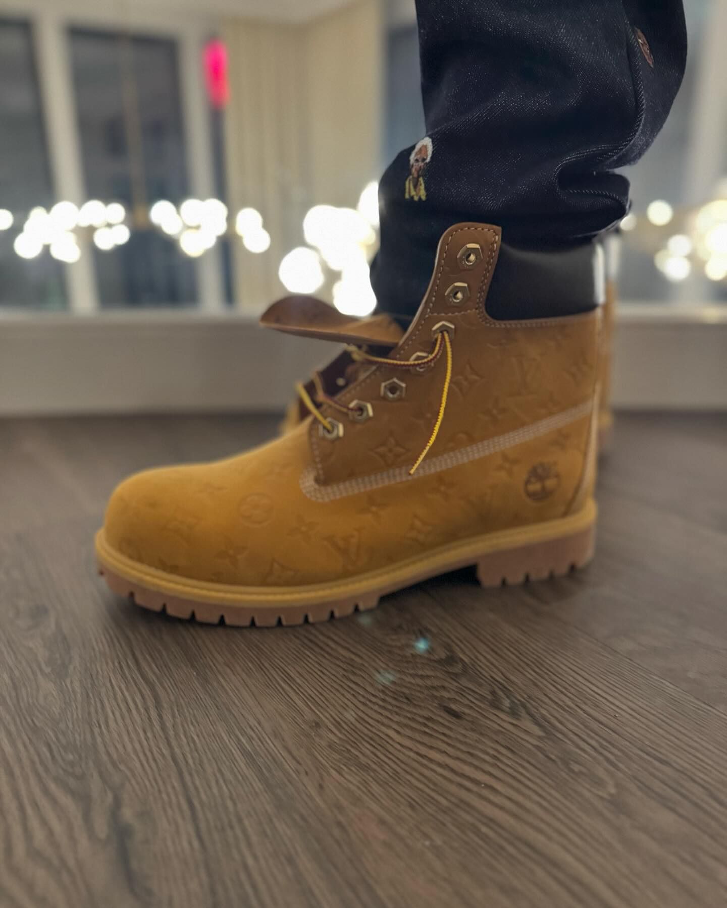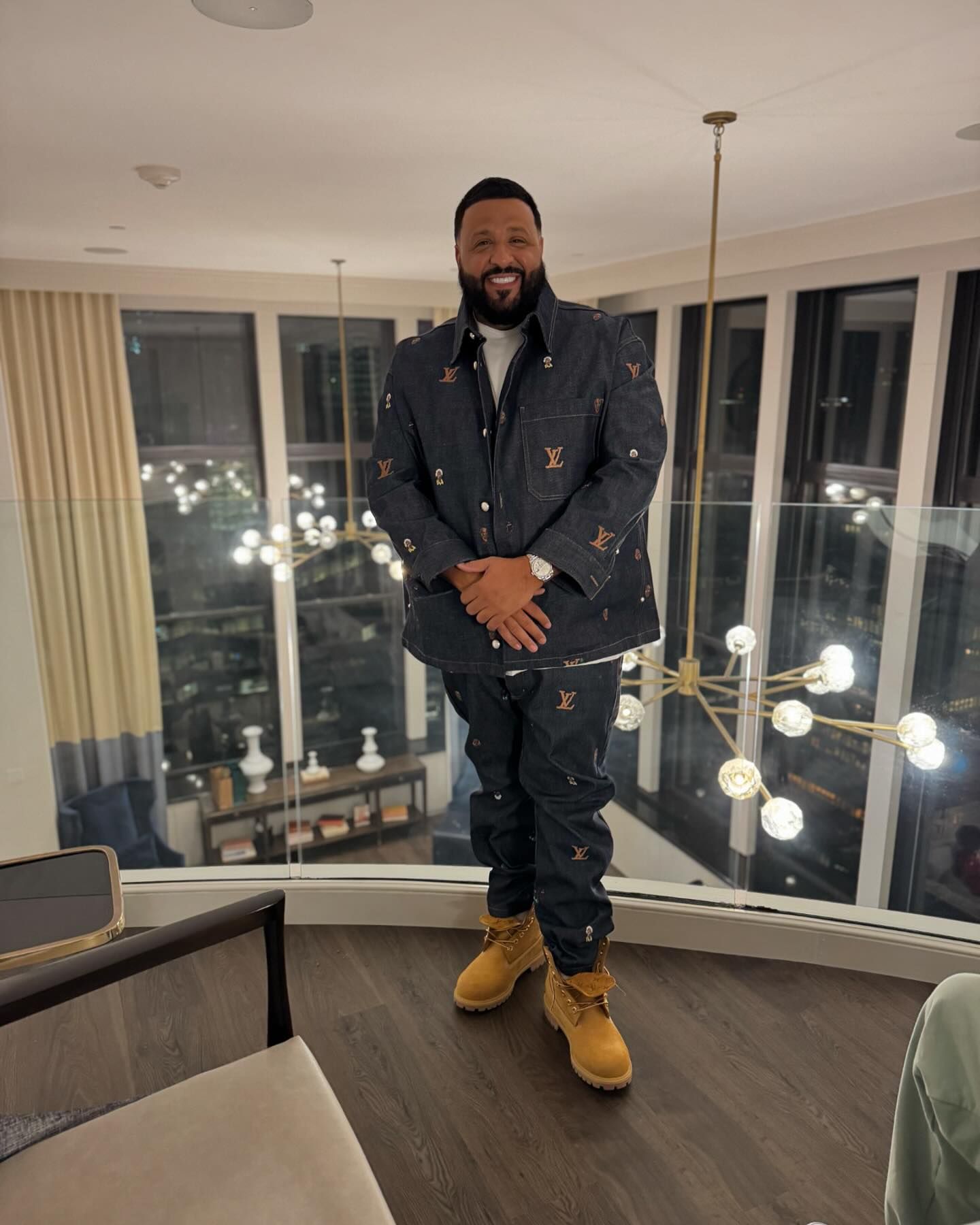 最近鞋王 DJ Khaled 上脚了满印老花图案的 LV x Timberland。