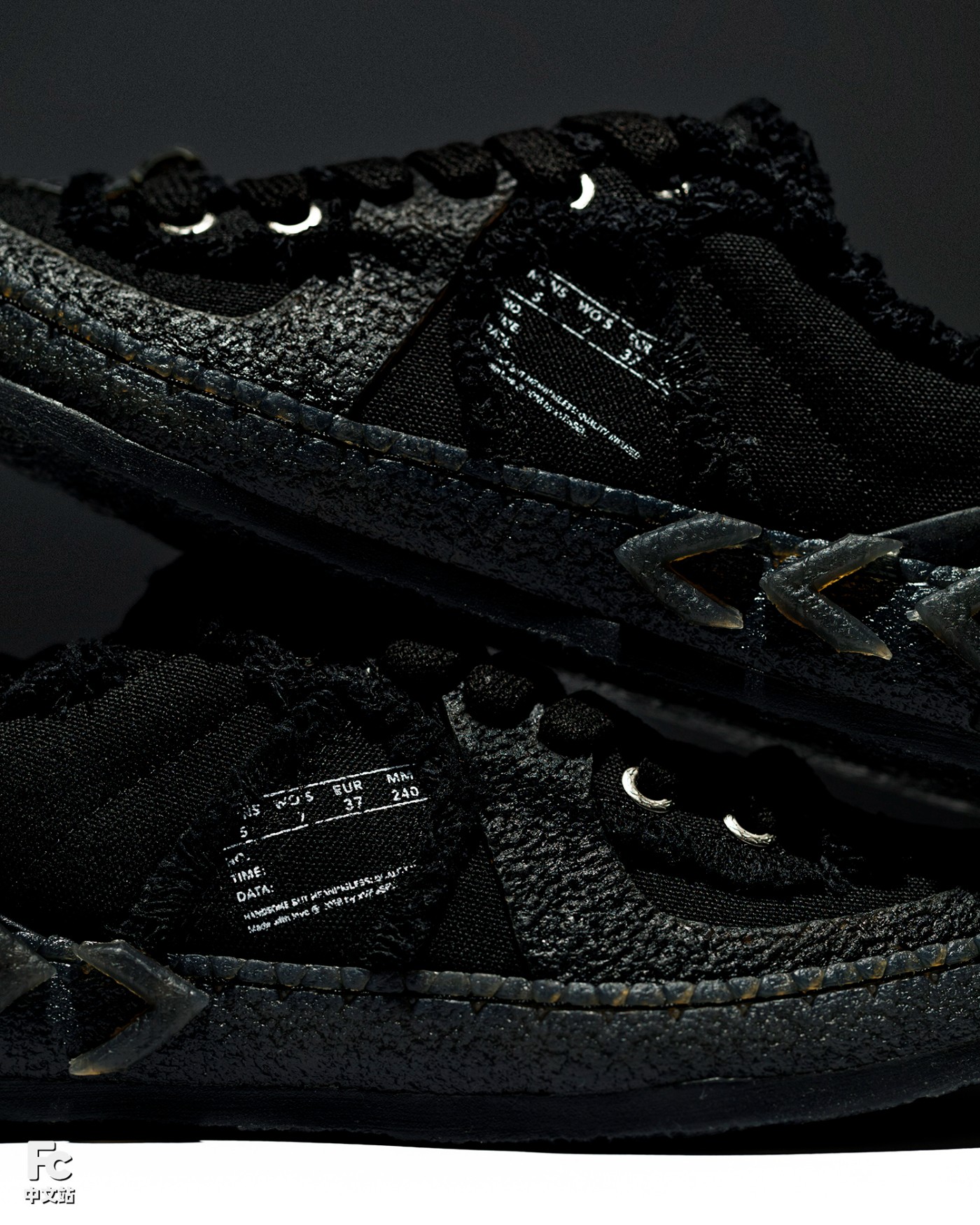 另一双虽然通体是纯黑色,但由于鞋款独特的线条以及不同材质的碰撞,我们也能感受到丰富层次。