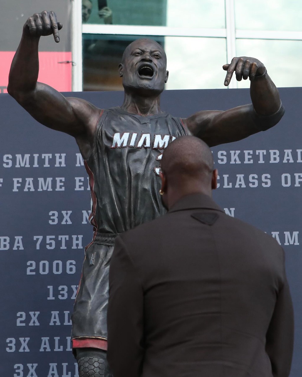 昨天,迈阿密热火正式在主场球馆外揭幕了韦德的雕像,使韦德成为队史第一个获此殊荣的球星。