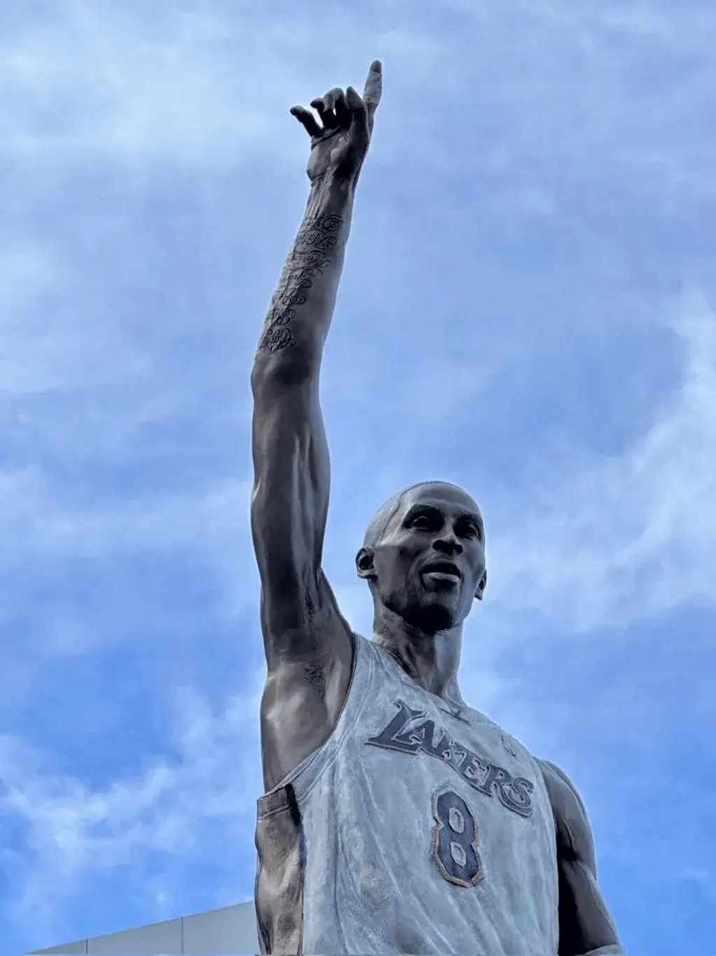 后来科比的指天雕像也是出自他手,但其实已经可以看出些端倪了,不少湖人球迷就不太满意这座雕像,说不像科比。