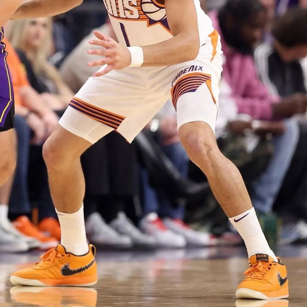 其中最耀眼的当属布克,在对阵湖人的比赛中,专门上脚了一双全新 PE 版本 Book 1。