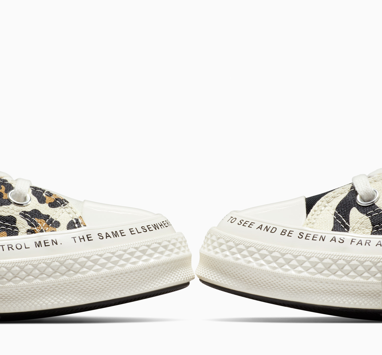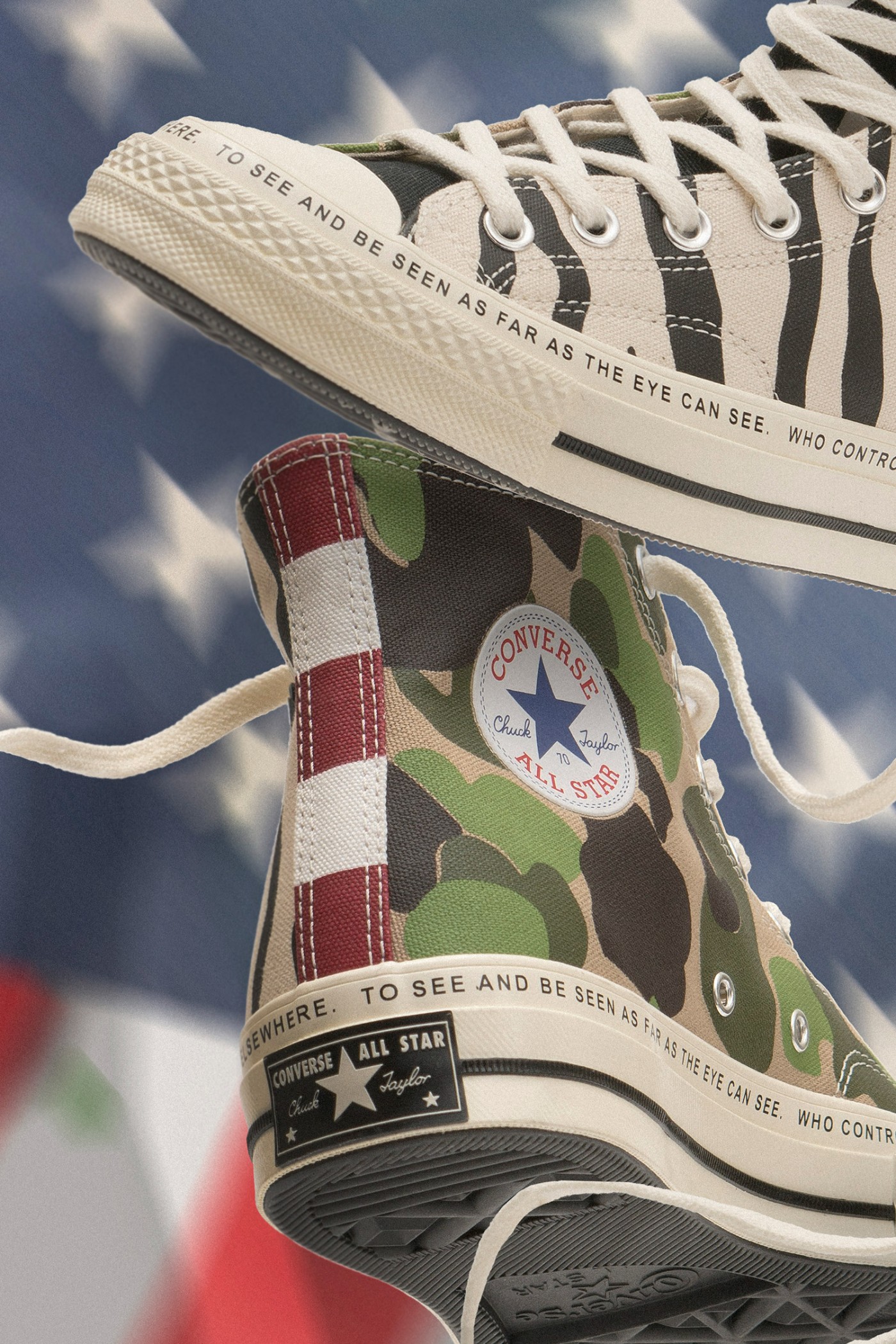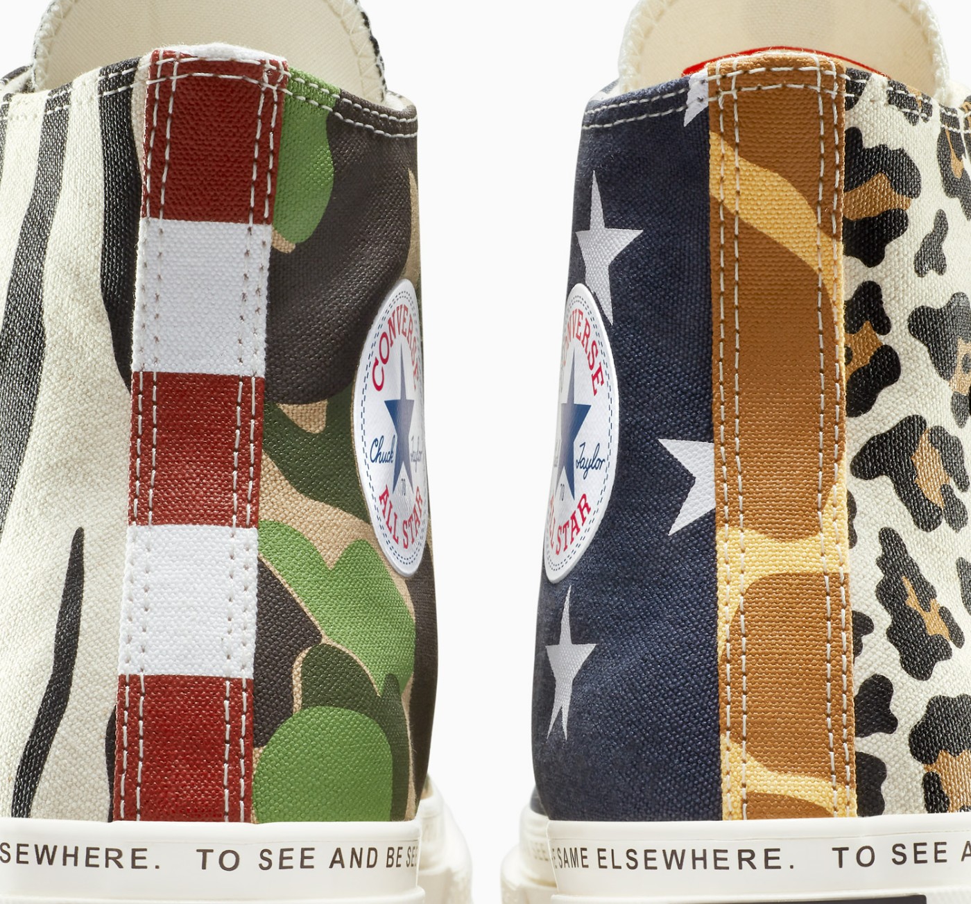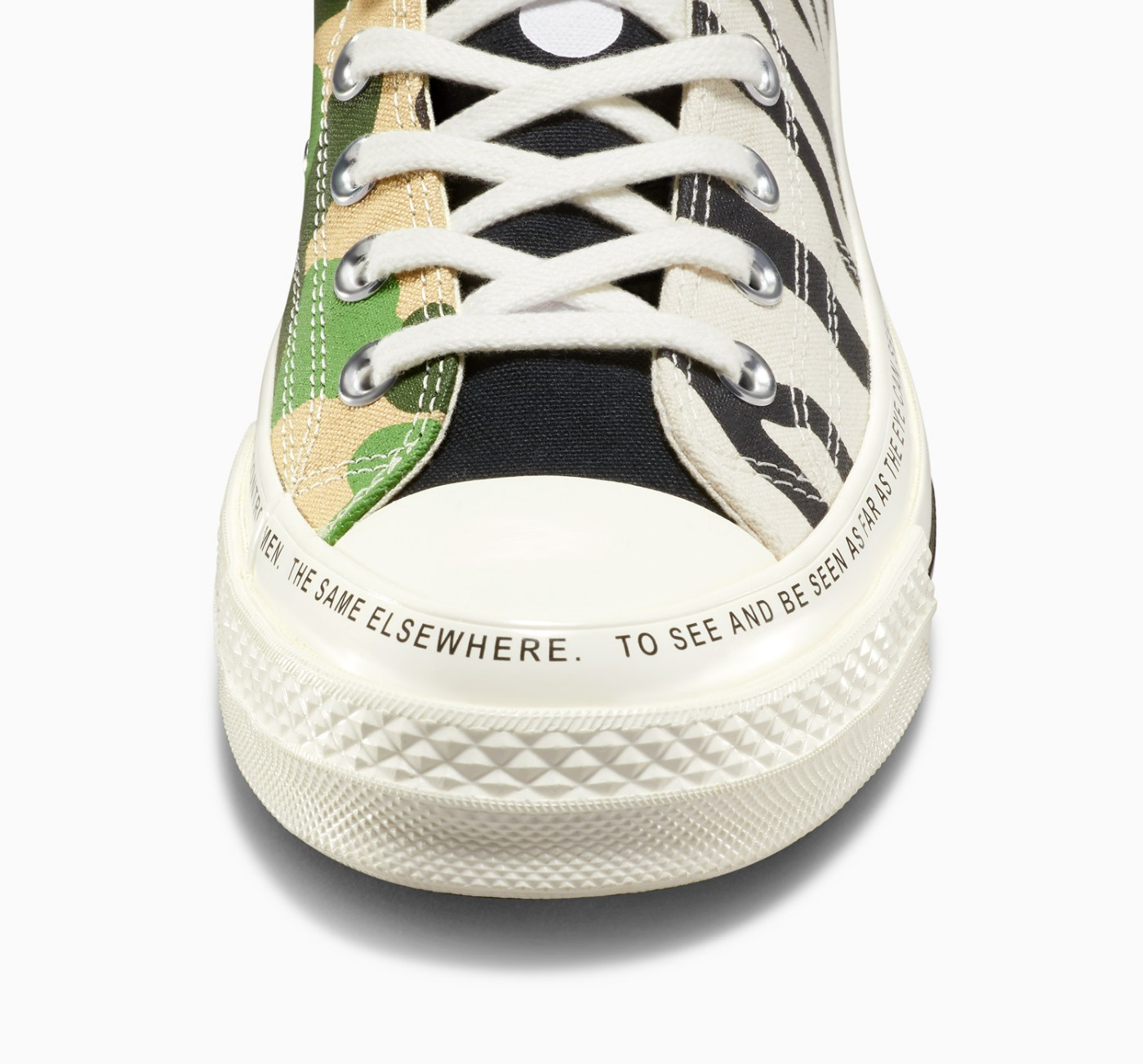 Brain Dead 主理人 Kyle Ng 从朋克、硬核音乐、漫画、滑板等领域汲取灵感,大胆将多种元素混搭在匡威经典 Chuck 70 鞋款中。