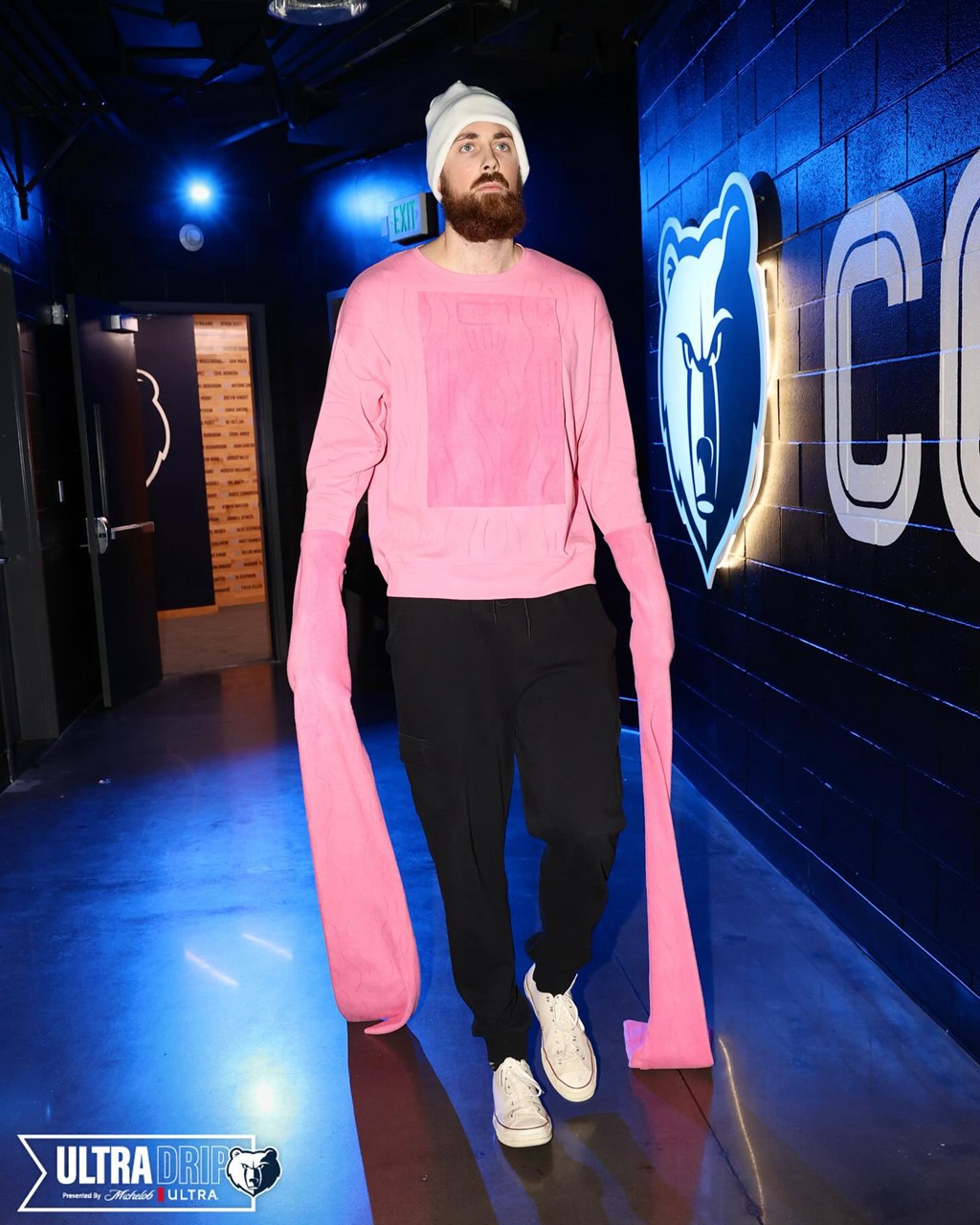 但小编个人认为最搞笑的,还得是灰熊球员杰伊·赫夫,直接化身「库兹马(粉色战袍版)」,致敬这位 “潮流先驱”。