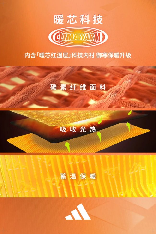 把「前沿科技」同「新潮设计」相结合,一直是 adidas 的强项,在今年全新的 CLIMAWARM 暖芯科技系列中也得到了很好的体现。