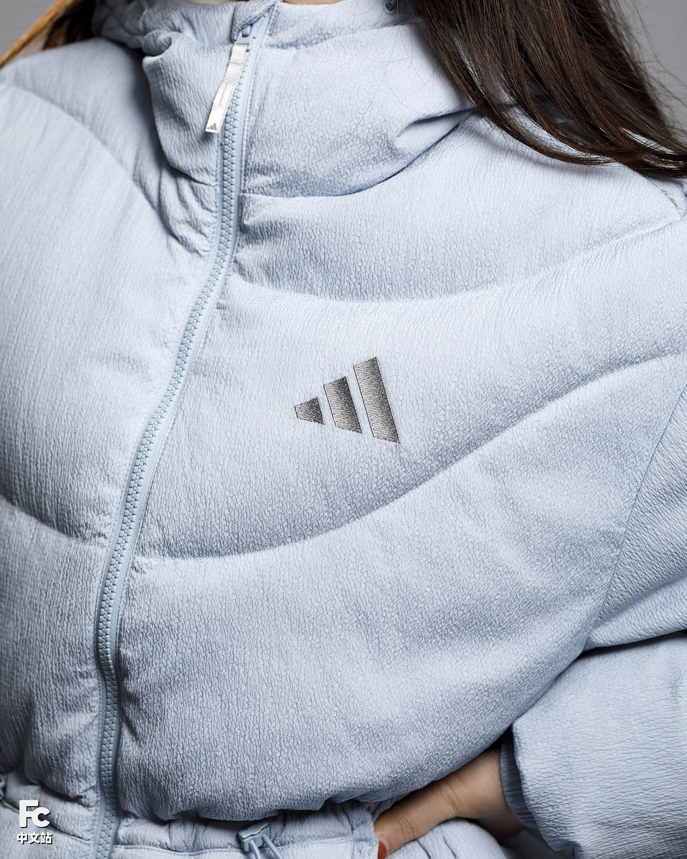面料质感十分细腻,富有时尚感的同时,又有 DWR 涂层提供拒水支持。