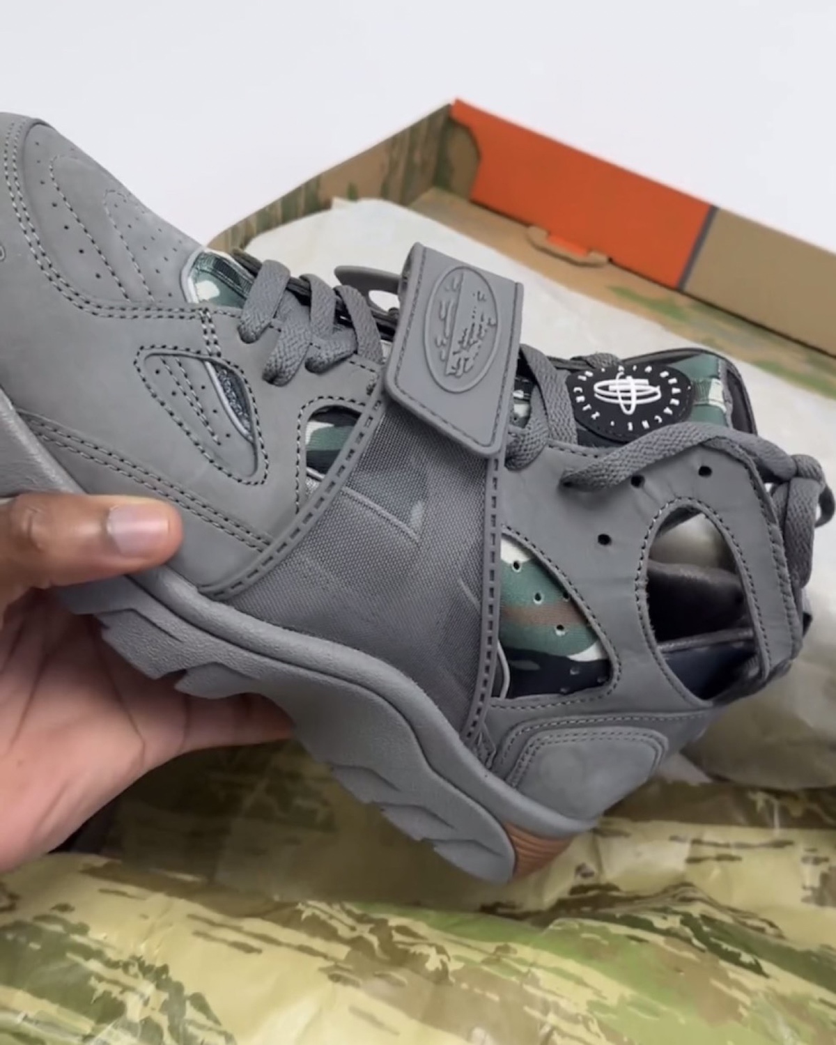 这次双方选择颇为冷门的 Air Trainer Huarache 为蓝本,预计将推出黑、灰、卡其三款配色。
