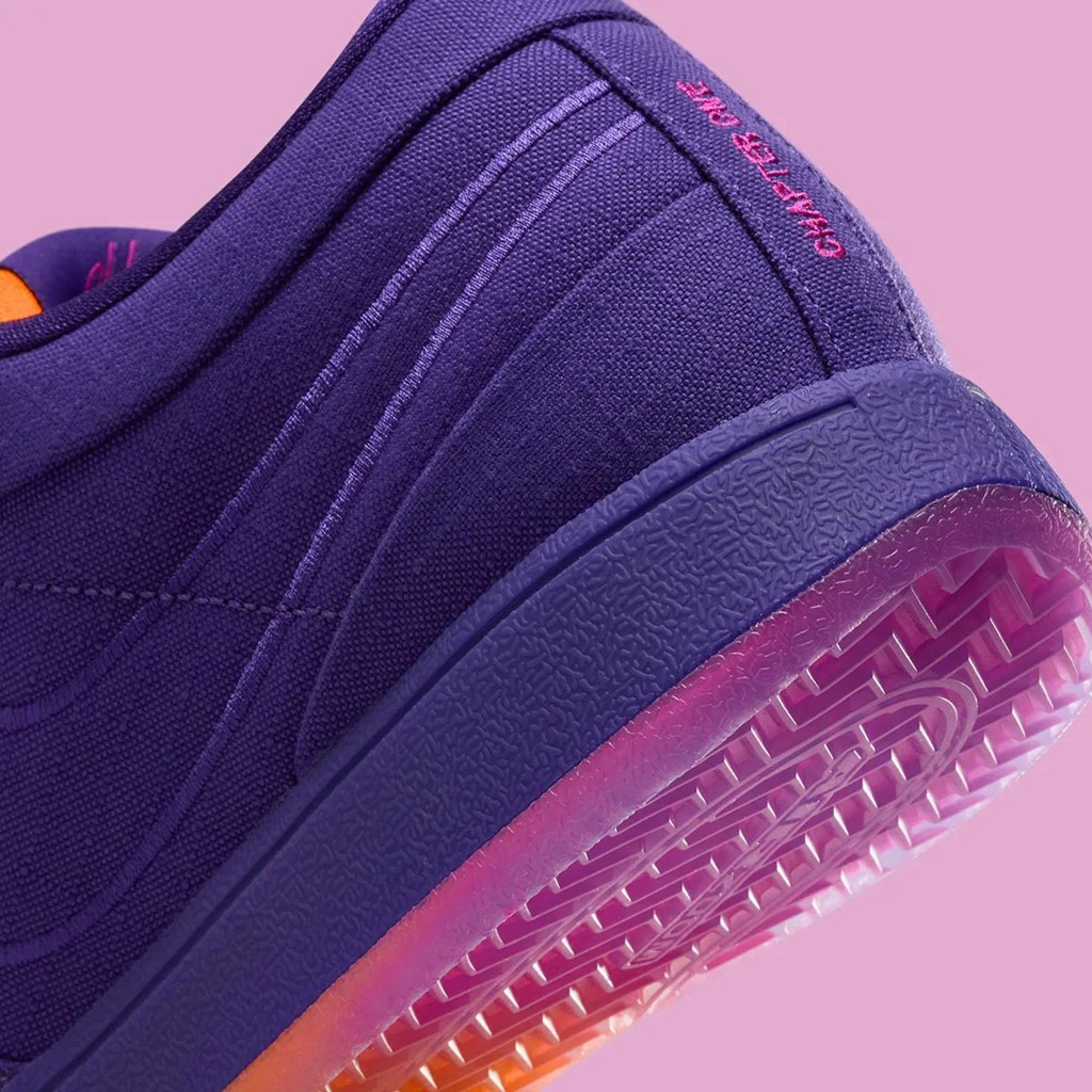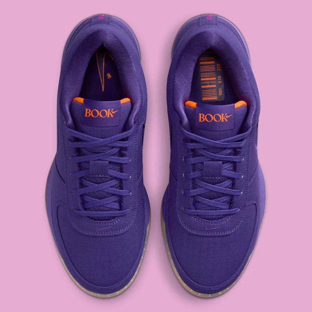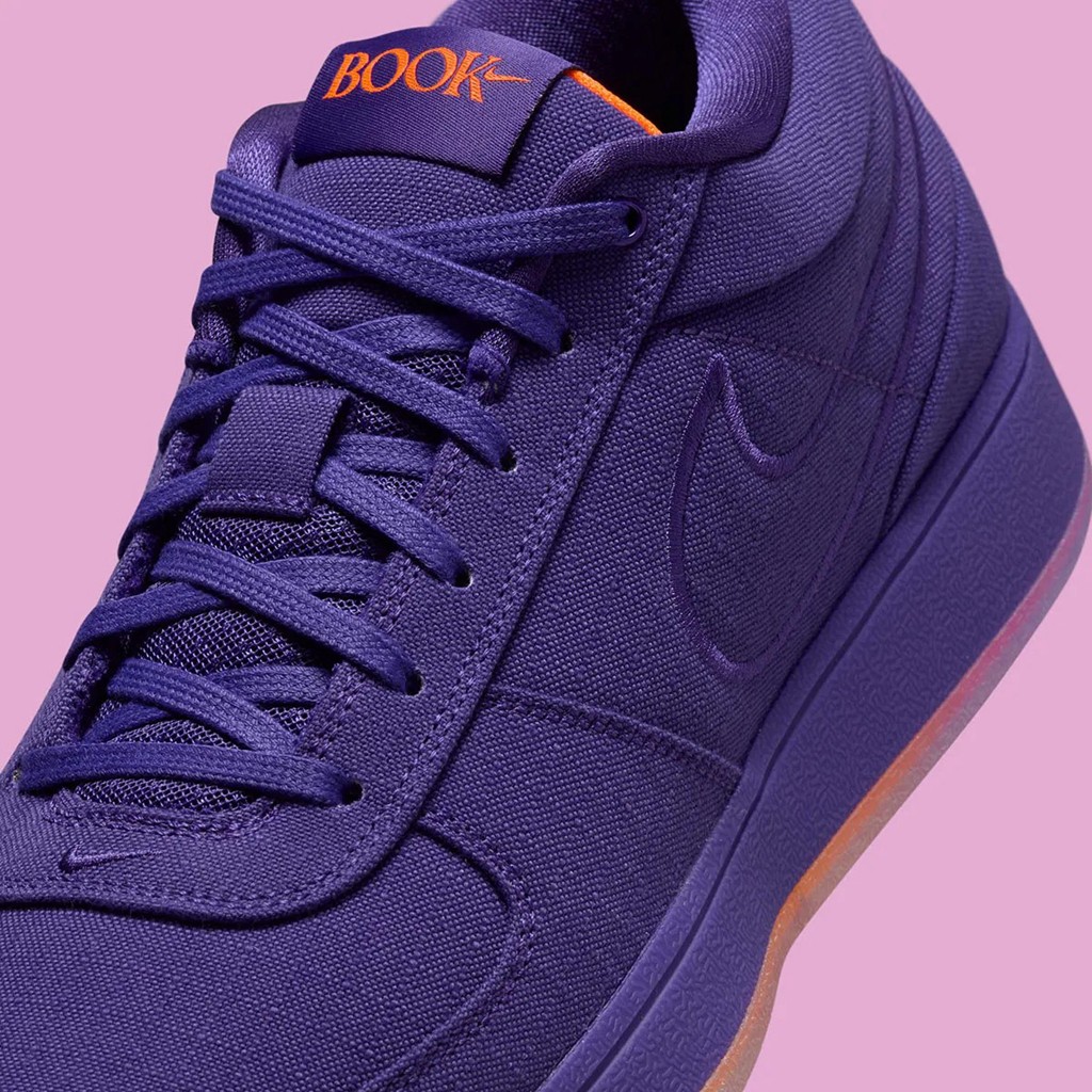 Nike Book 1 近日再度迎来新配色市售的消息,这次要登场的是太阳队主题配色。 鞋面以标志性紫色覆盖,自带格子纹理的帆布材质轻便透气。 鞋舌等细节部分则以橙色妆点,象征着布克的母队。 但最绚丽的恐怕还是外底,不仅是半透明材质,还有朝霞般的渐变色彩。 科技方面,整双鞋搭载了后掌 Zoom Air 缓震气垫以及全掌 Cushlon 中底。 据悉,全新 Nike Book 1 “Suns” 将于 11 月 15 日,感兴趣的朋友可以保持期待。