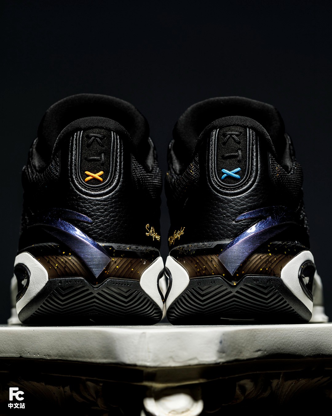 来到后跟,这次巧妙地利用细绳做出 KTX(KT10)的字样,其中 X 部分两边分别为黄色和蓝色,尽管官方没有详细解释,但小编猜测代表勇士和独行侠这两支他效力过的队伍。