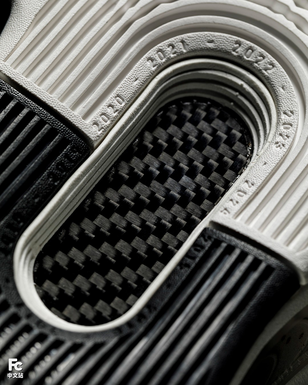 来到外底的碳板开窗,依旧是胶囊造型,四周环绕着十年的数字。