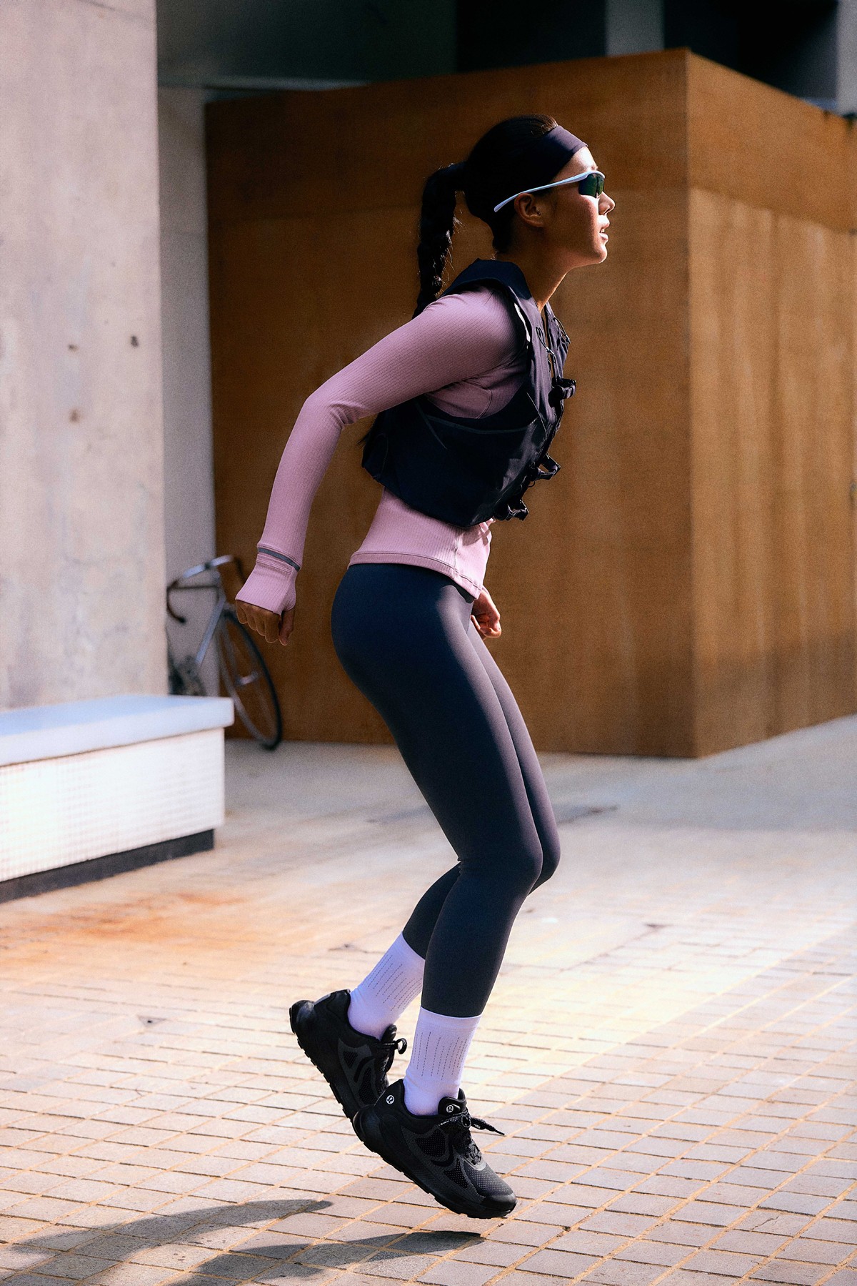 上衣搭配 It’s Rulu 跑步长袖运动衫,轻柔贴合,侧身拉链口袋便于收纳随身小物。