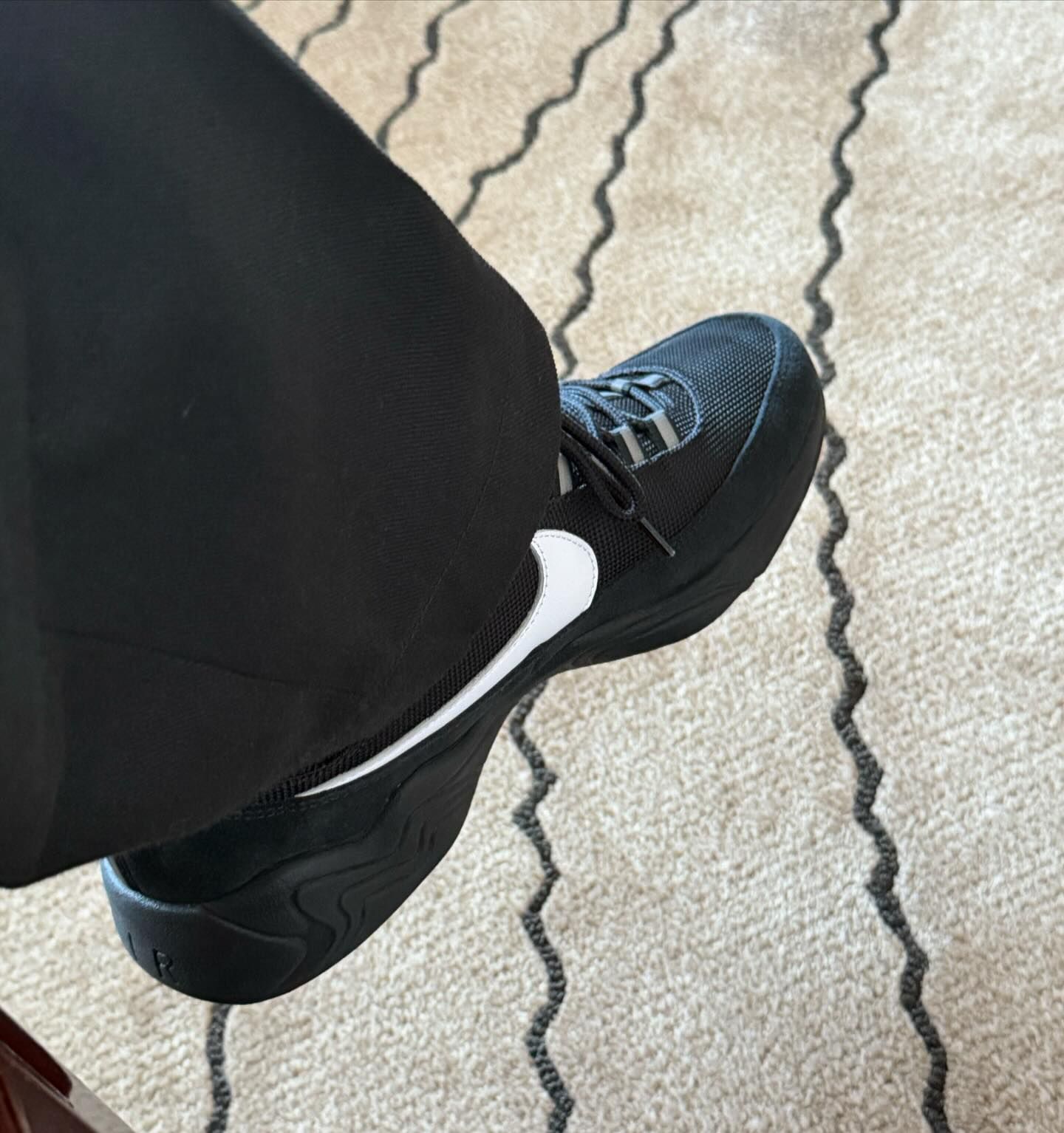 参与拍摄宣传型录的藤原浩夹带私货,提前上脚了即将登场的全新 Nike 联名鞋。