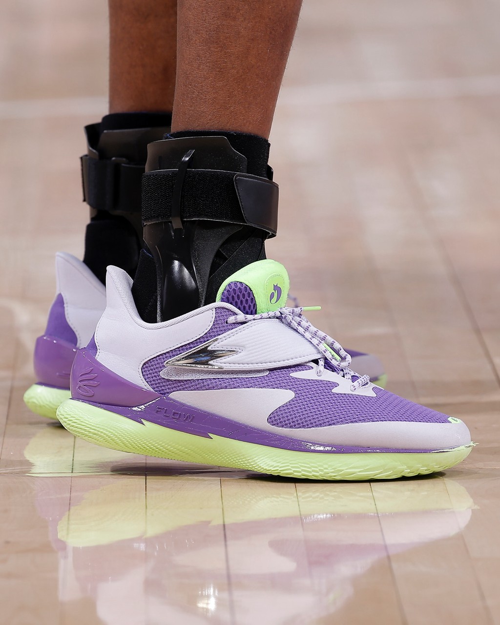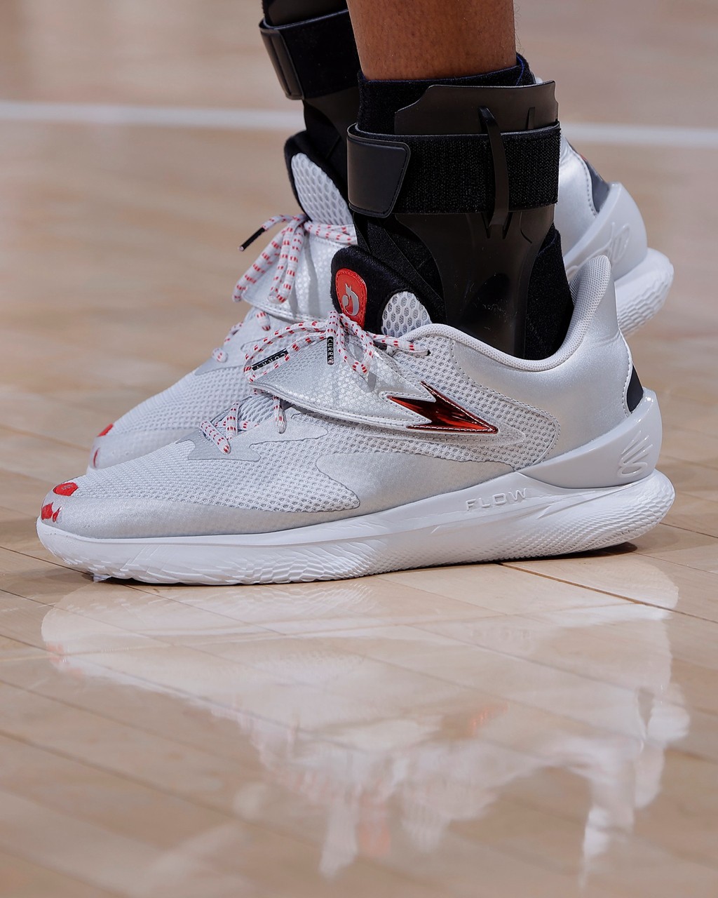 设计上可以看出 UA 篮球线的基础风格,最亮眼之处在于鞋面绑带,被设计成了狐狸尾巴的样子,呼应福克斯的姓氏。