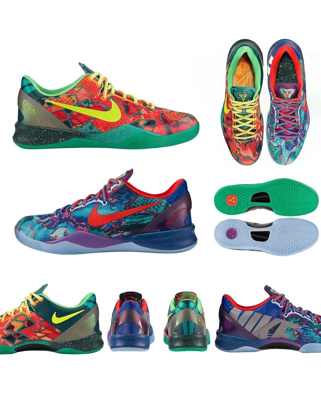 Nike Kobe 8 “What The” 就是这样一款让人记忆深刻的杰作,30 种不同的 Kobe 8 配色精华巧妙的融合在一起,带来眼花缭乱的视觉效果。