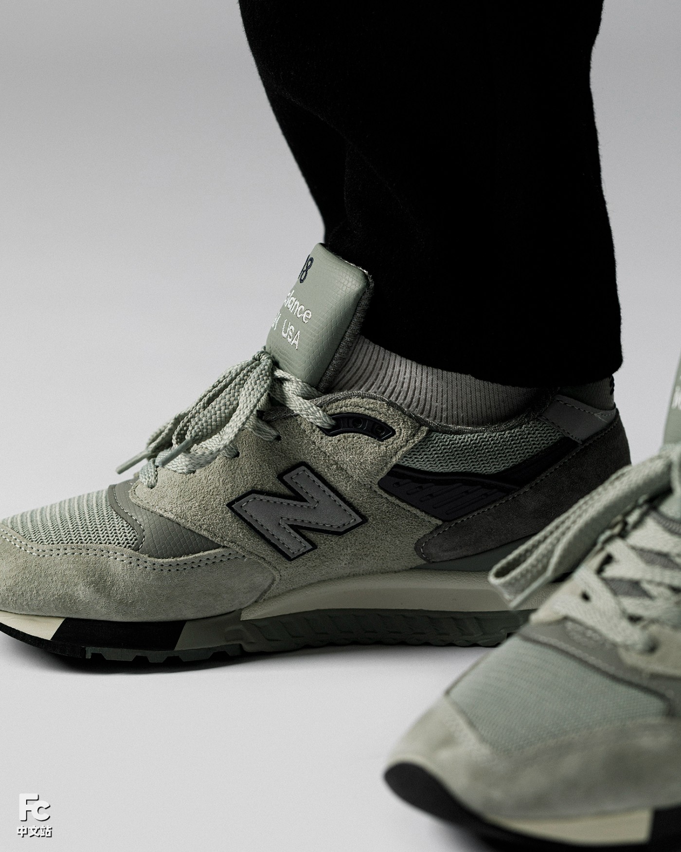 乍一看是 New Balance 经典的灰色装扮,仔细看其实能察觉到融入了绿色调。
