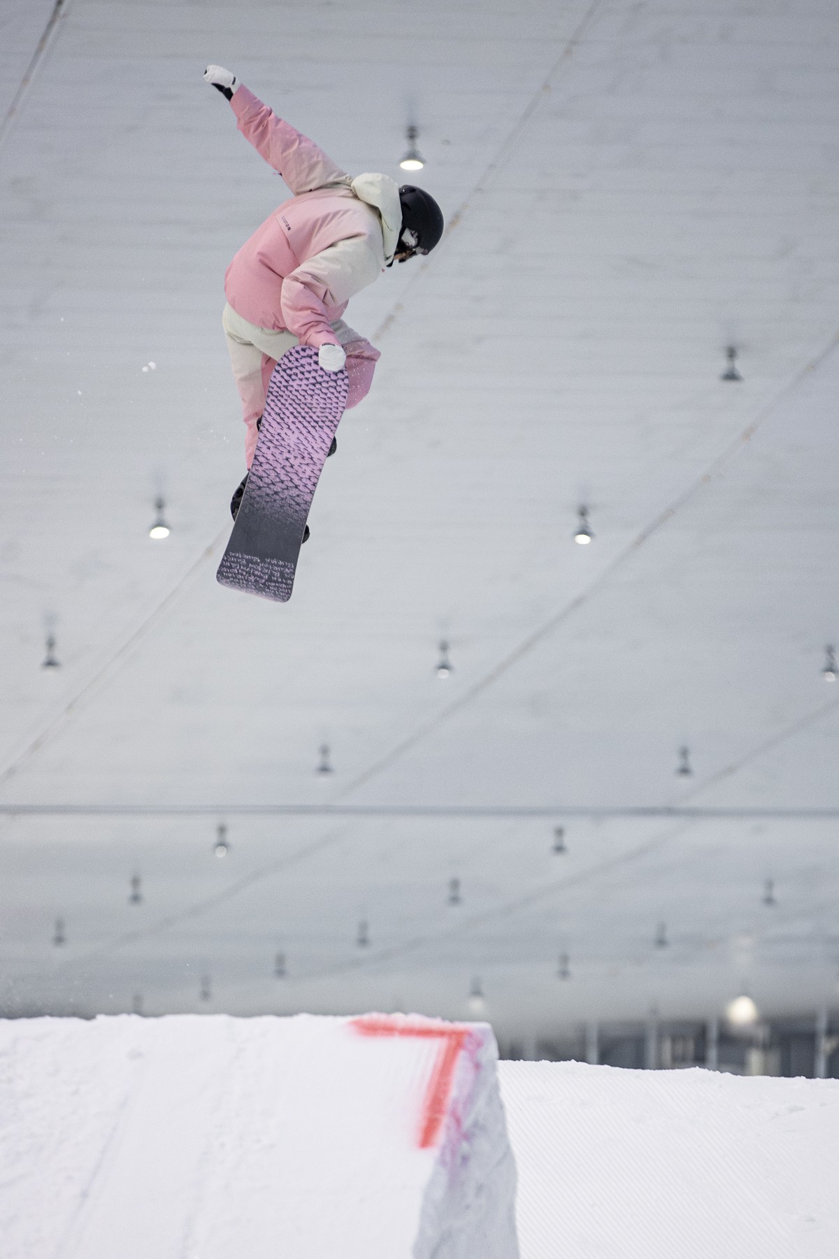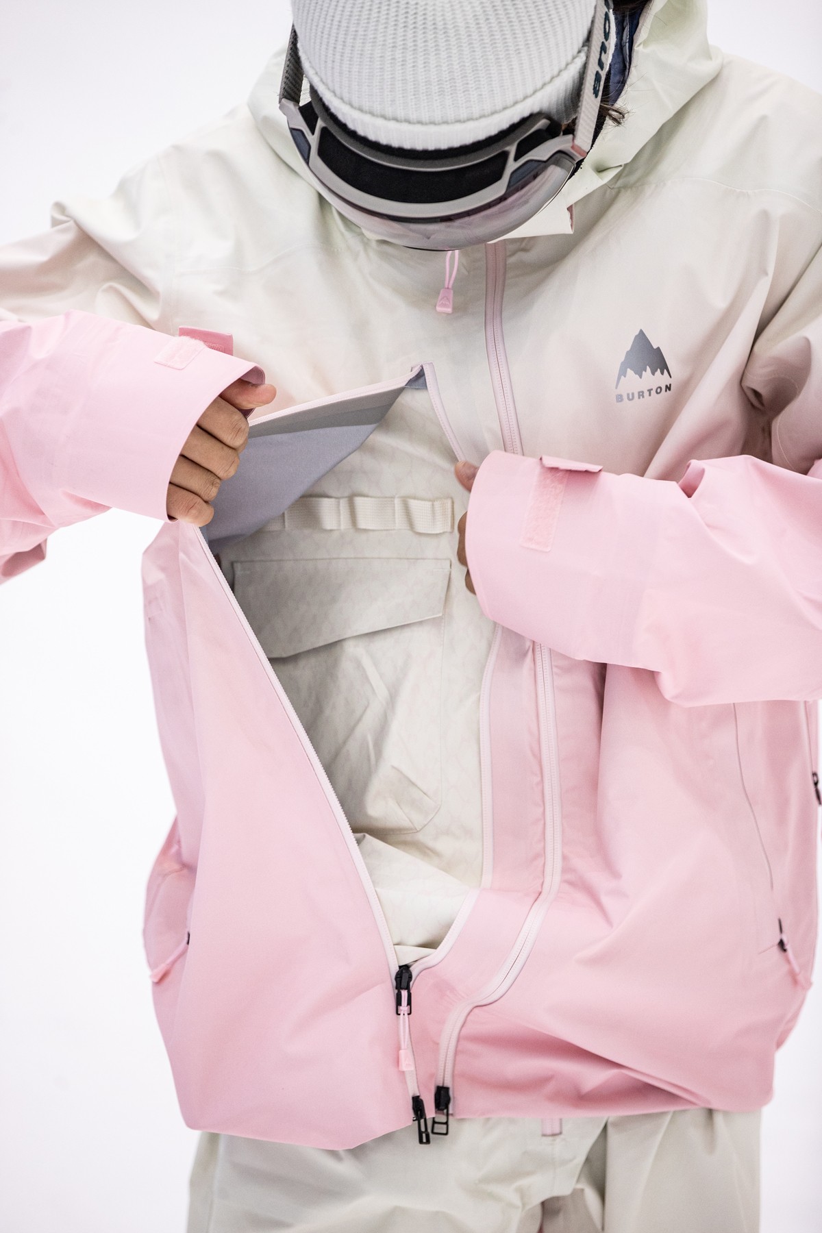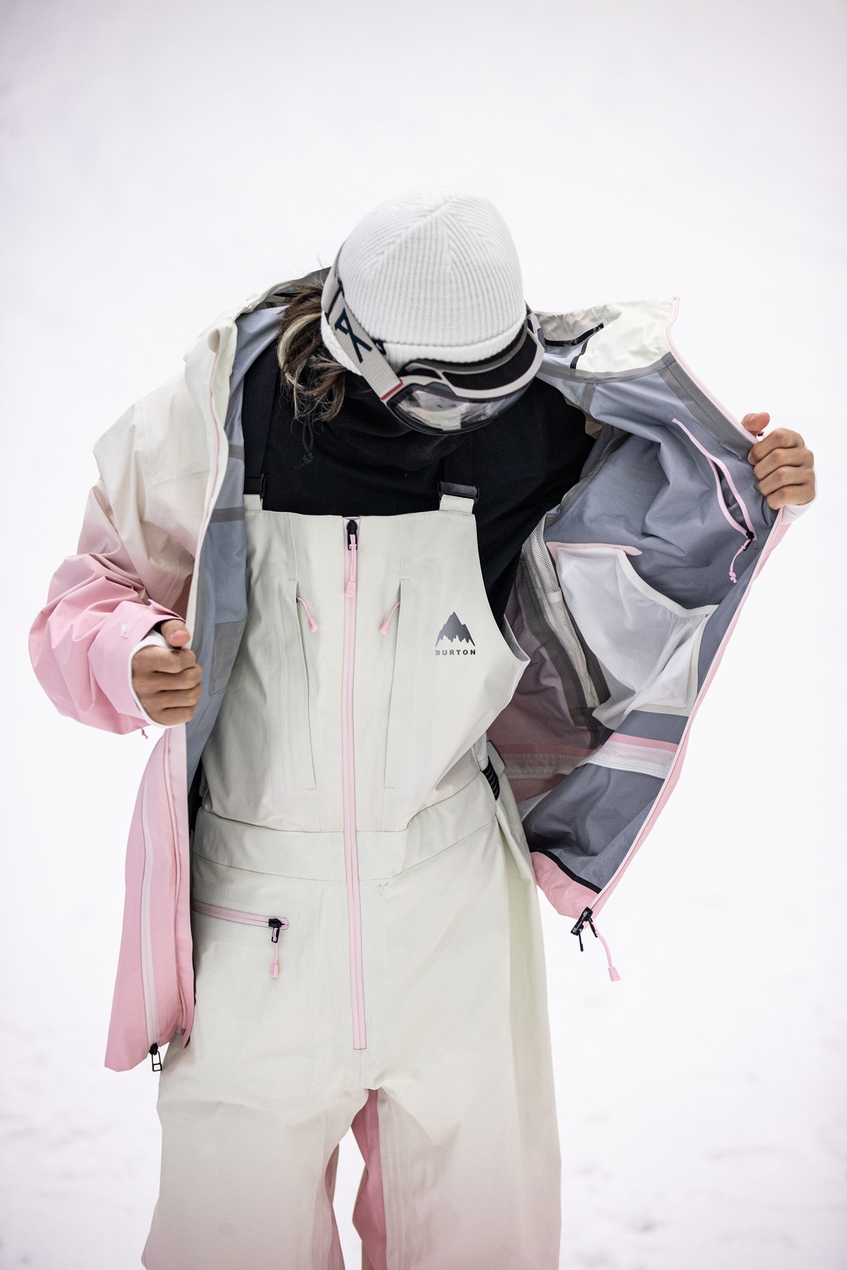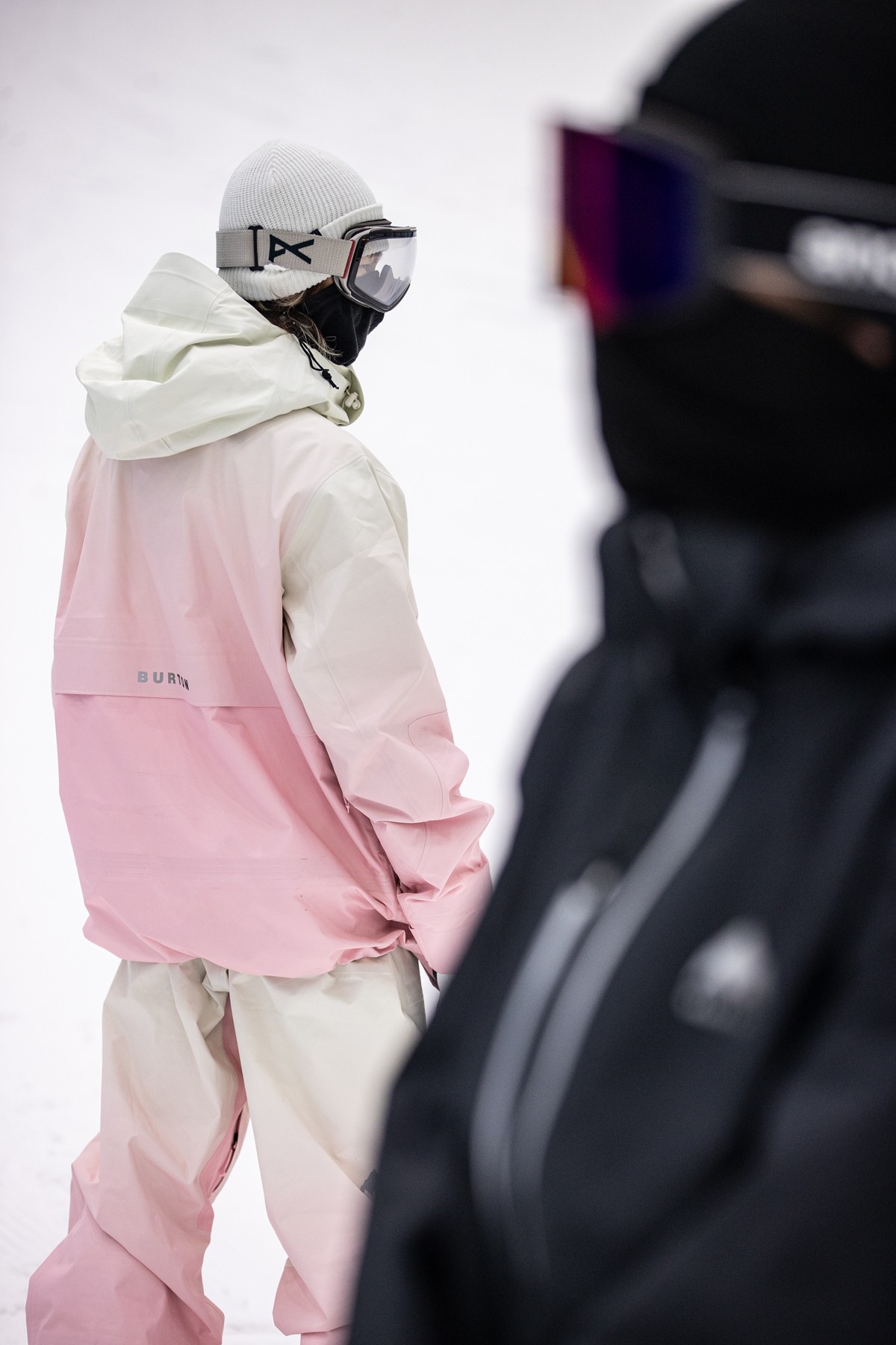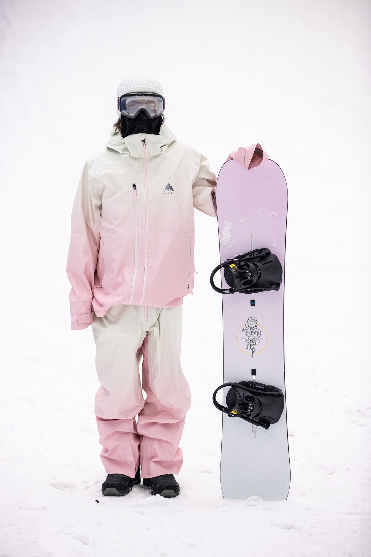 背面则是粉色的 BURTON 满印花体字样与细腻的蛇纹印花。