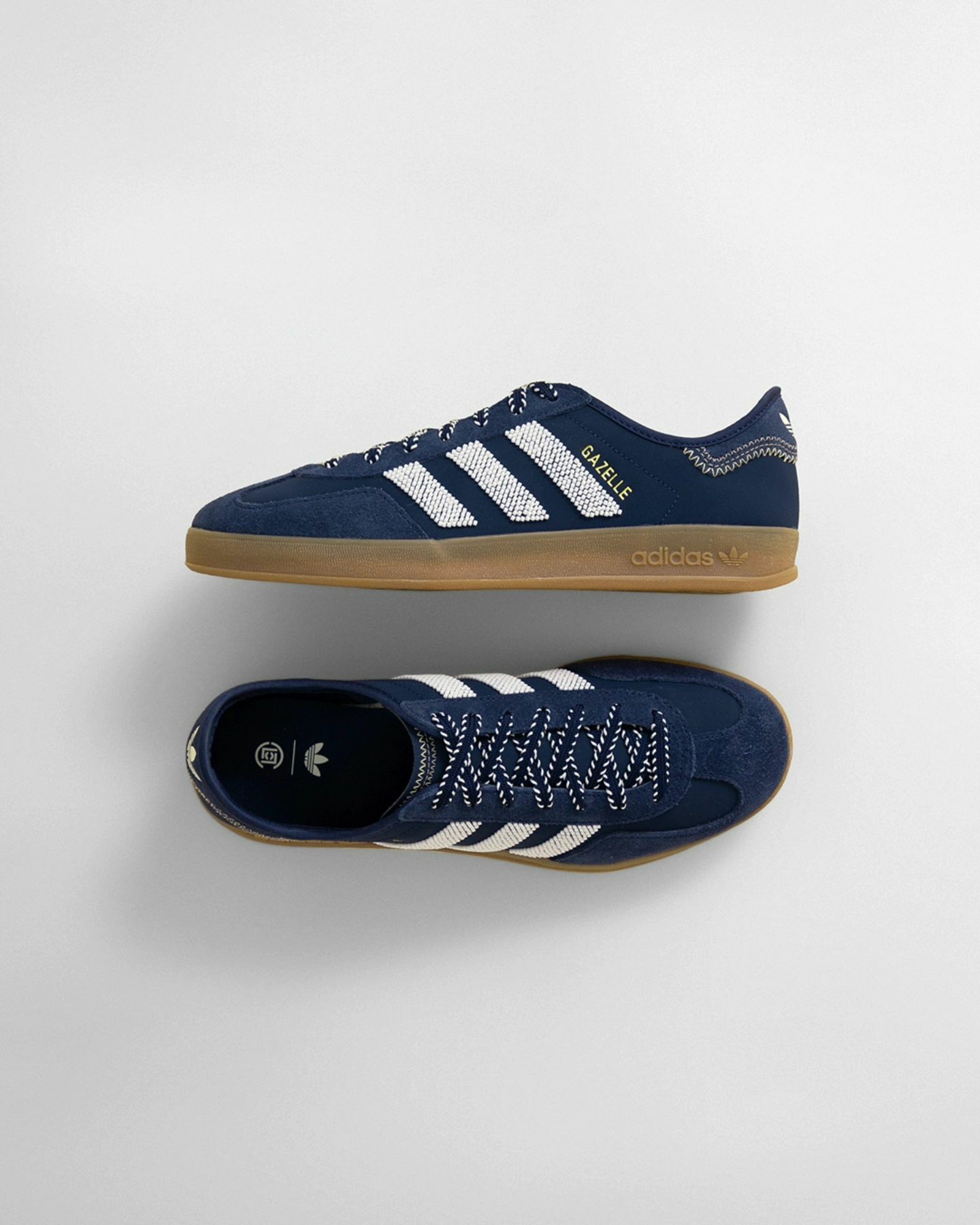 鞋款方面提供两款 CLOT x Gazelle,象牙白、学院蓝两双大家怎么选呢?