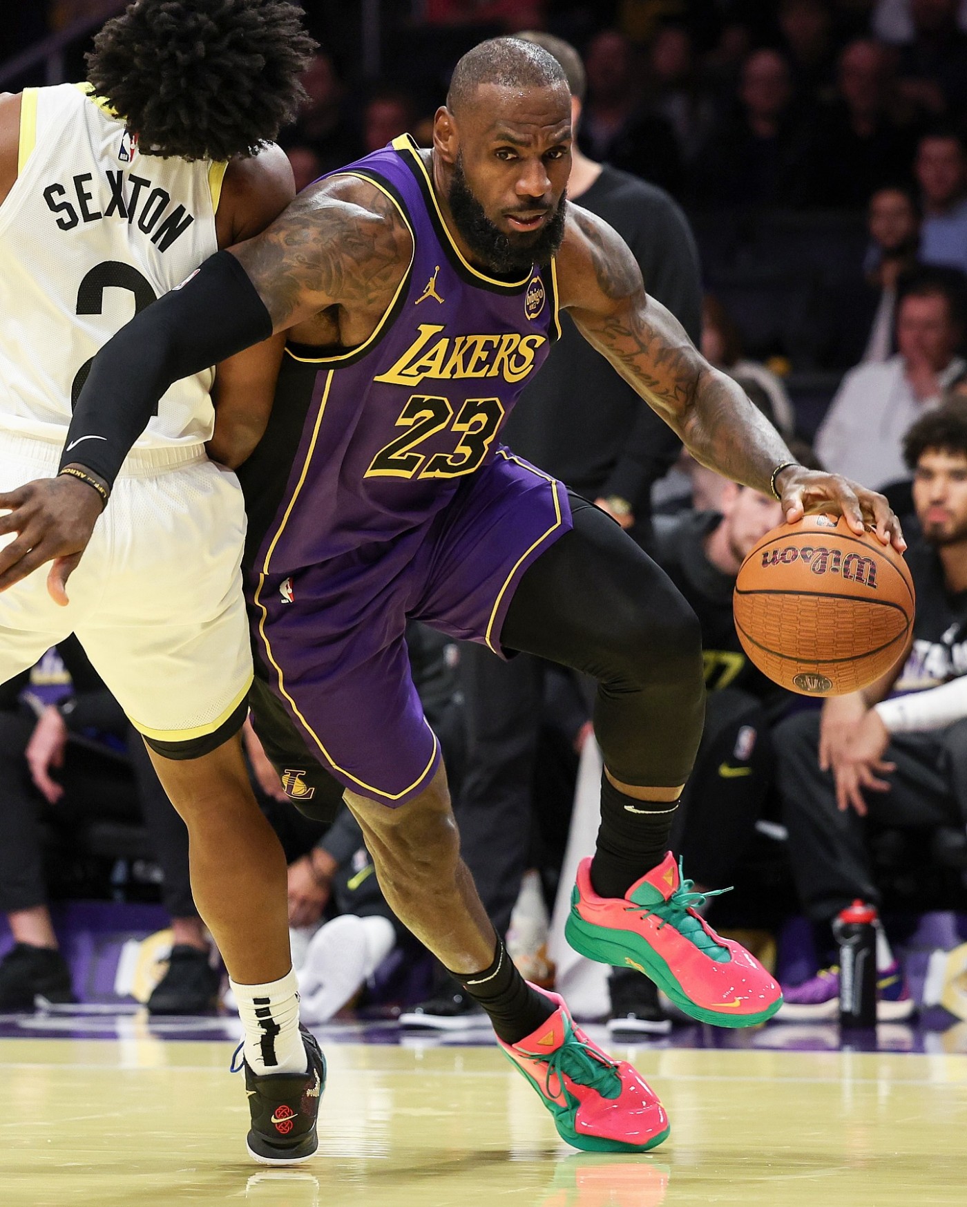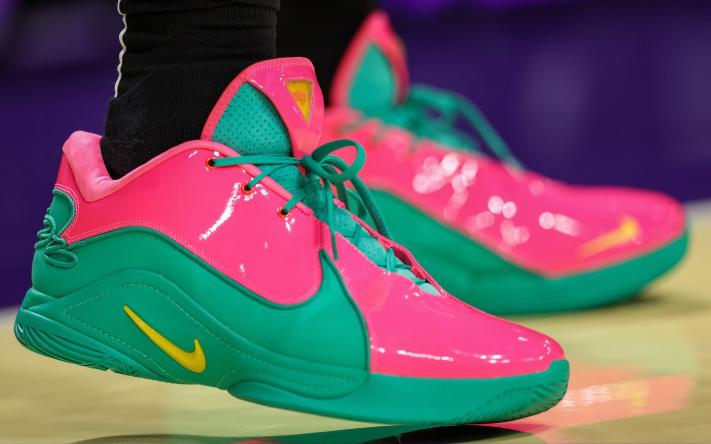 近日在对阵犹他爵士的比赛中,疑似最新一代 Nike LeBron 22 的南海岸配色被詹姆斯率先赛场上脚,让我们能够先睹为快!