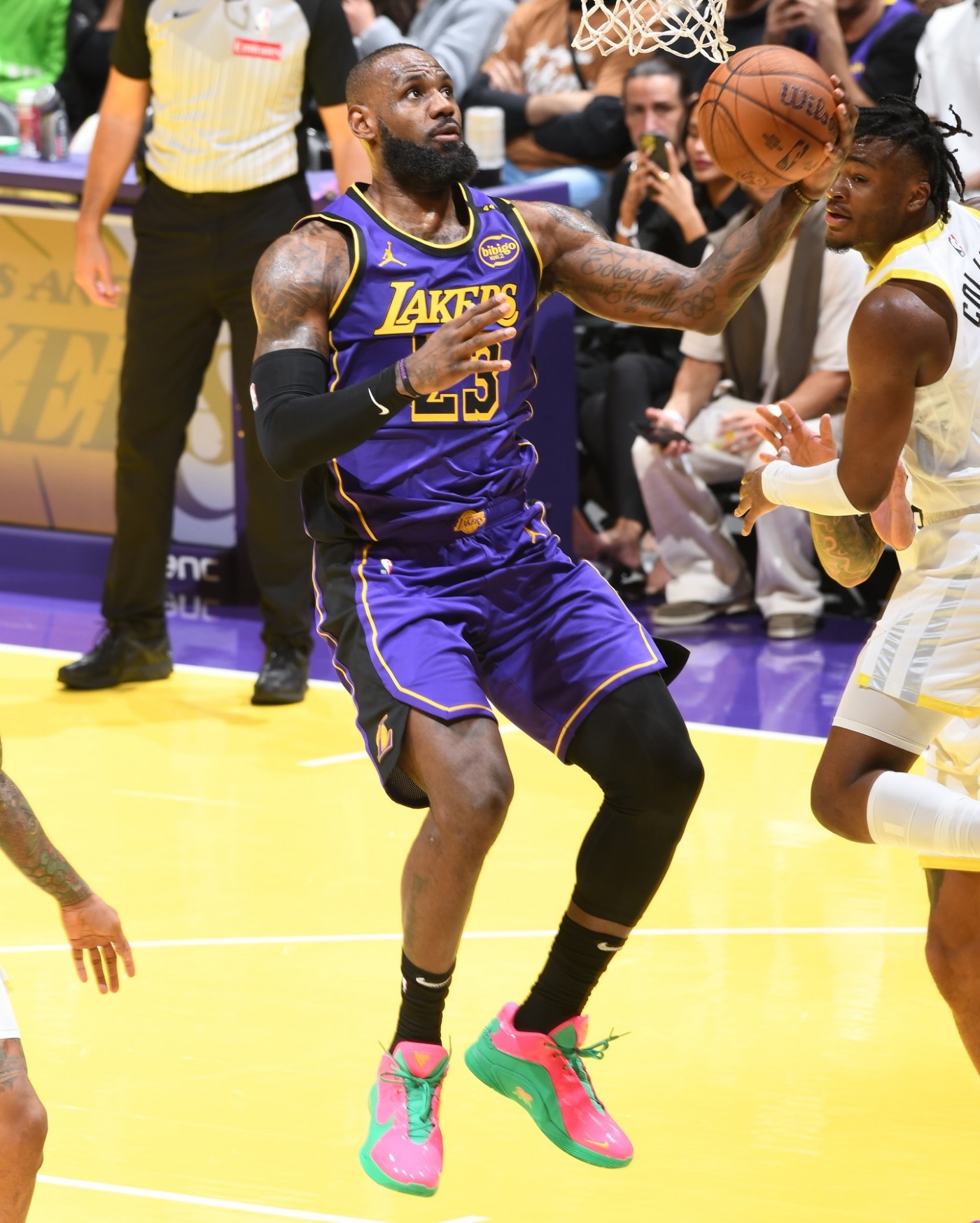 细节方面,明黄点缀与湖人球衣呼应。