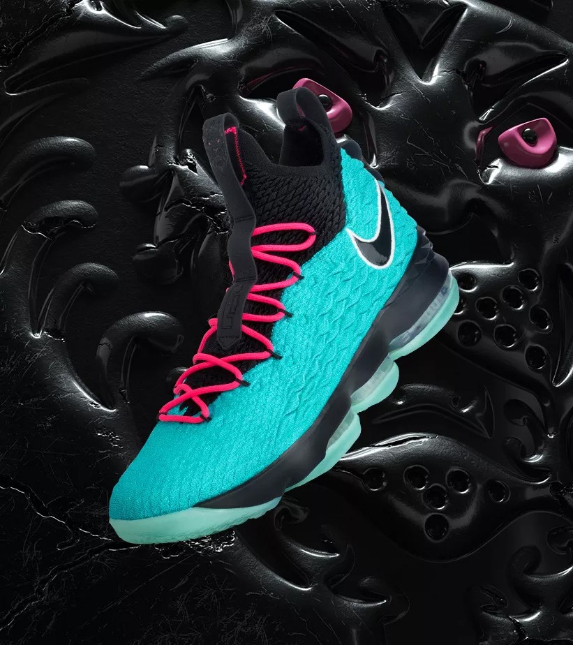作为詹姆斯签名战靴最具代表性的配色主题,South Beach 南海岸配色的每一次现身,都格外圈粉。