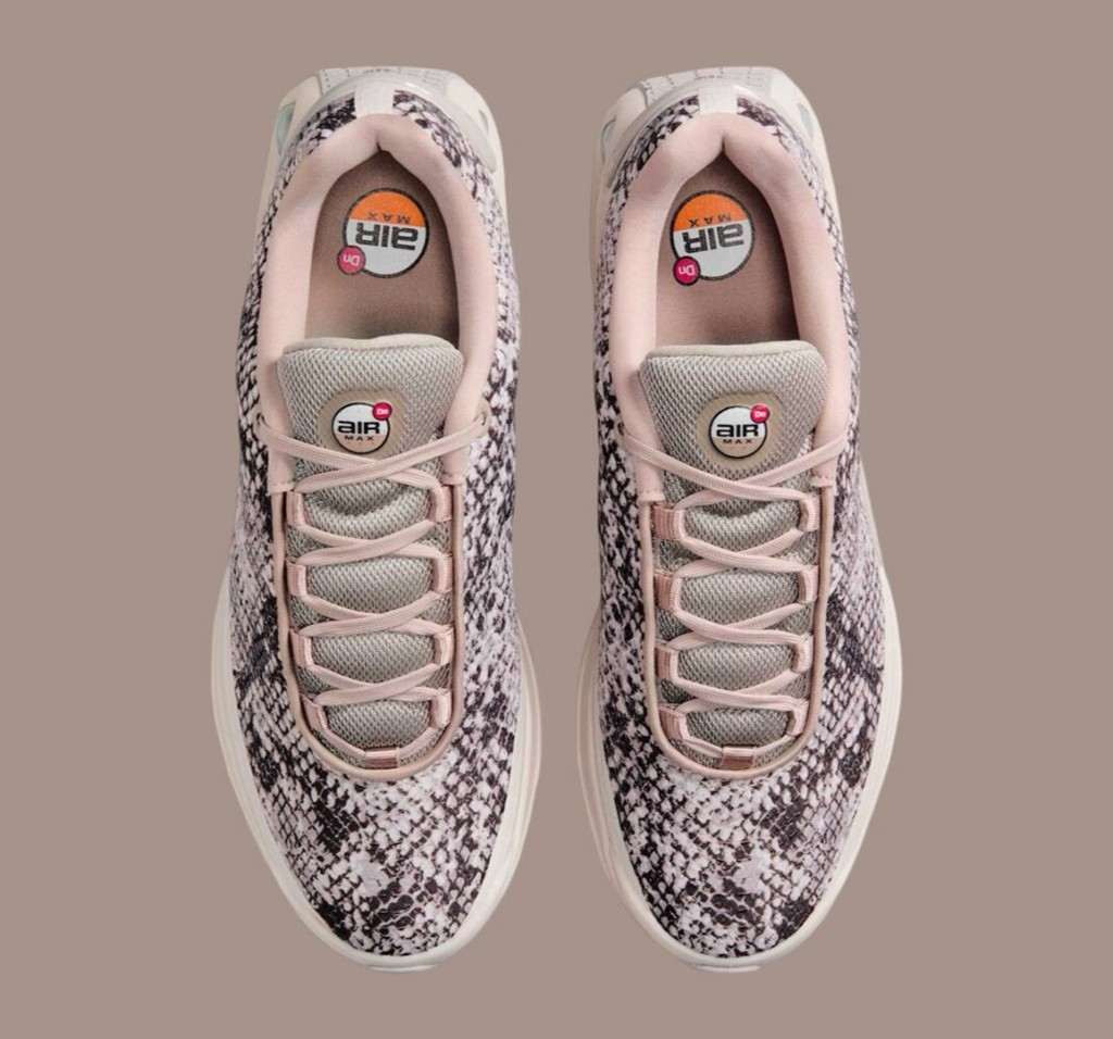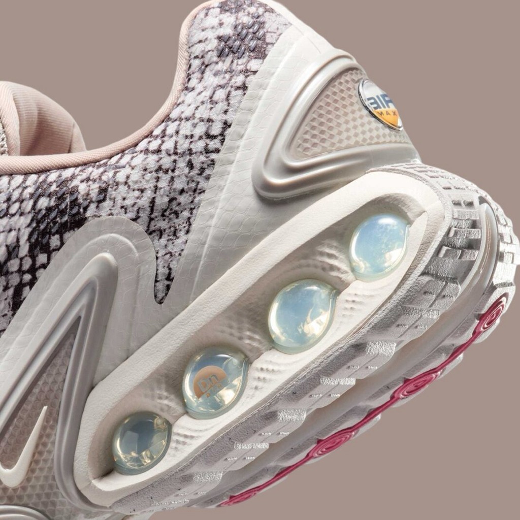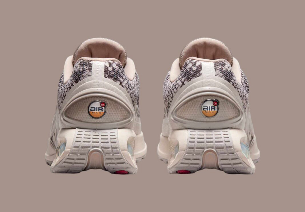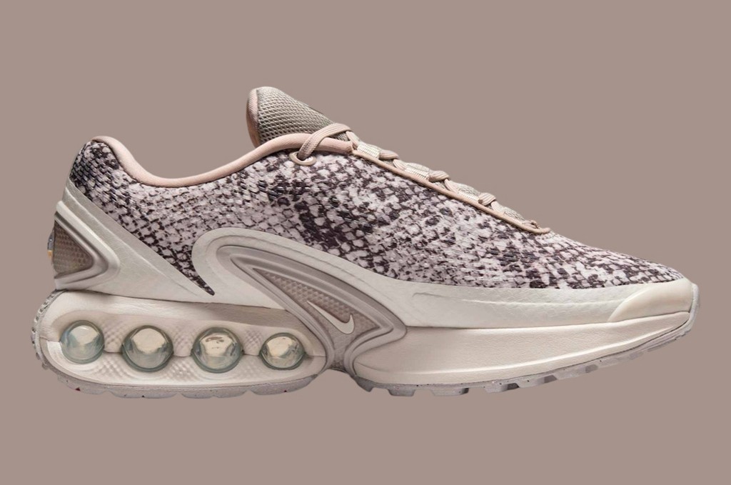 Nike Air Max DN 再一次迎来新配色,这次则画风一转,带来不一样的造型设计。 鞋面的蛇纹让原本未来感十足的鞋型突然有了奢华气质。 再加上其余部分骨白色的装扮,则更加显得 Vibe 风十足,同时也百搭耐看。 后跟 Dynamic Air 圆形开窗依旧辨识度拉满。 尽管鞋面是织物材质,但有着蛇纹的加持,耐脏属性也进一步提高。 全新 Nike Air Max Dn “Snakeskin” 将于今年登场。