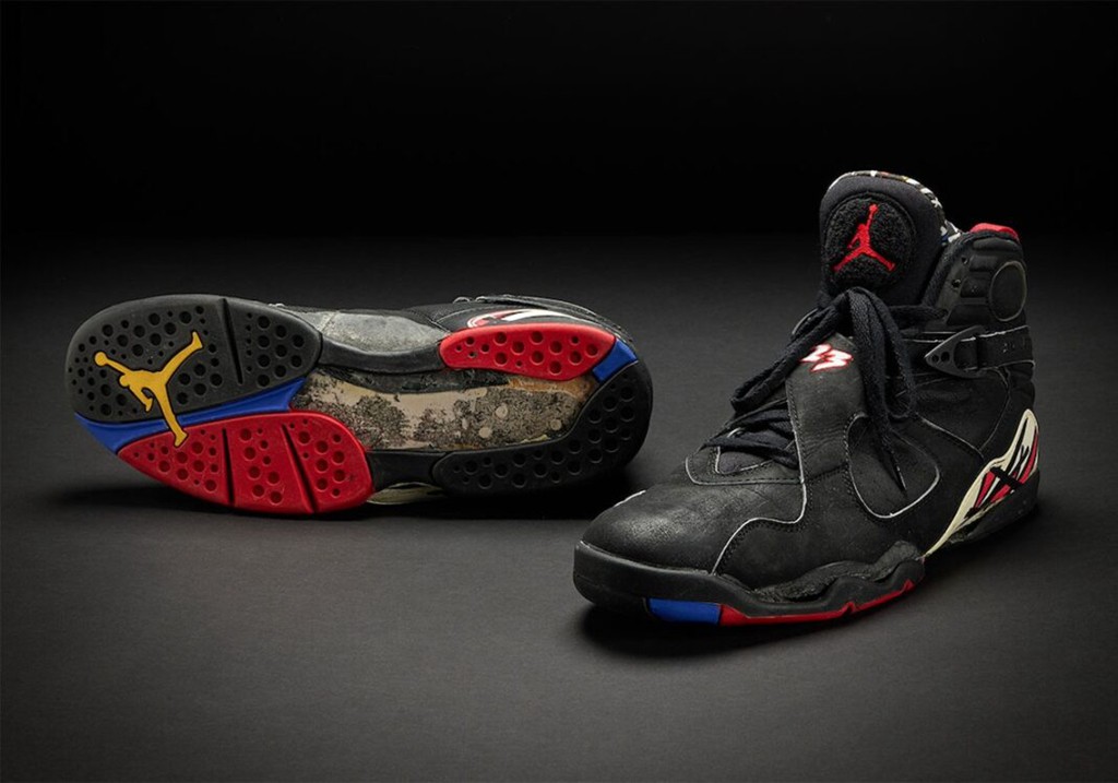 要知道创下拍卖纪录的乔丹亲穿 AJ 王朝套装中就包含一双这个配色的 AJ8,而套装成交价高达 5000 万人民币以上。