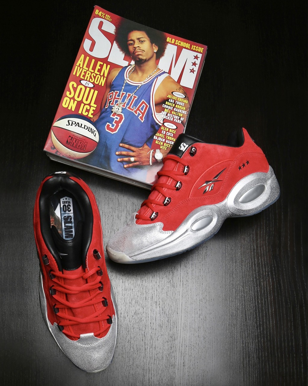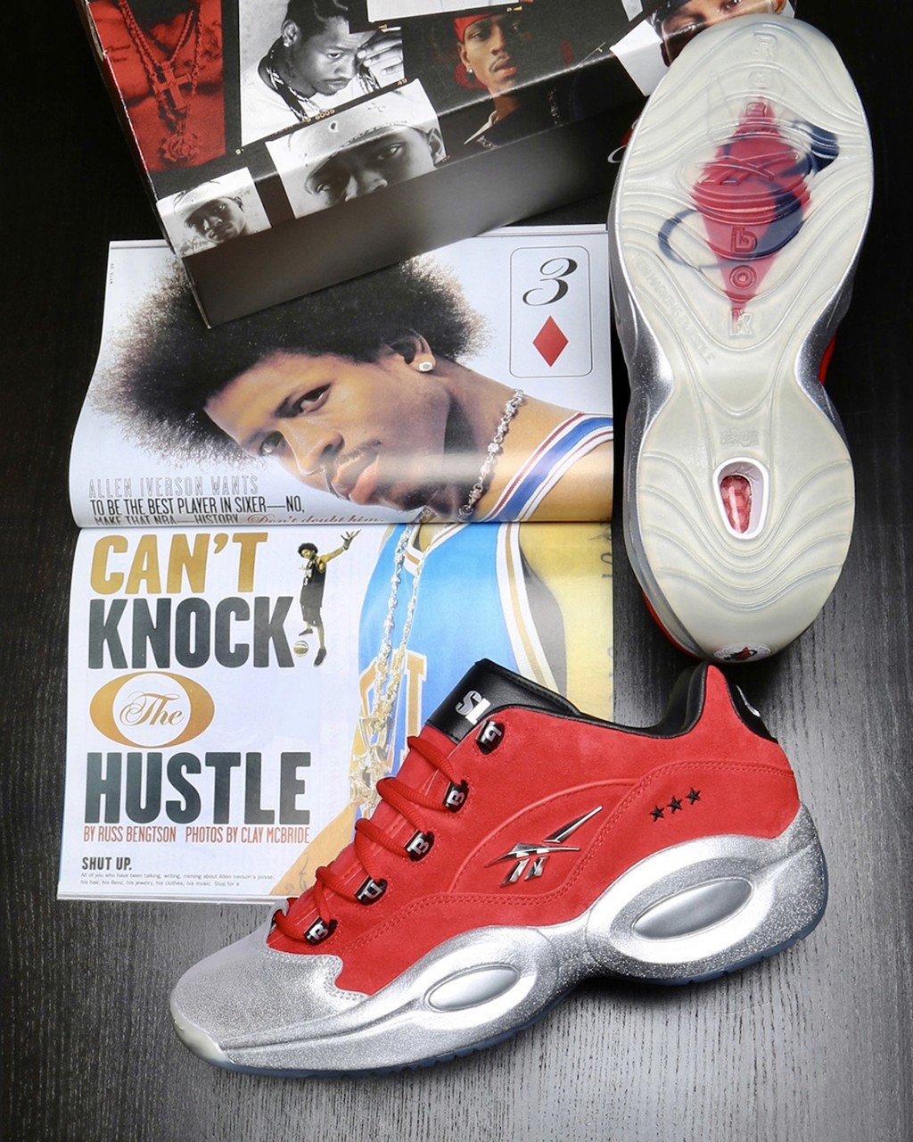 这次鞋型方面选择了 Question Low 为基础打造,融入艾弗森爆炸头封面的元素。