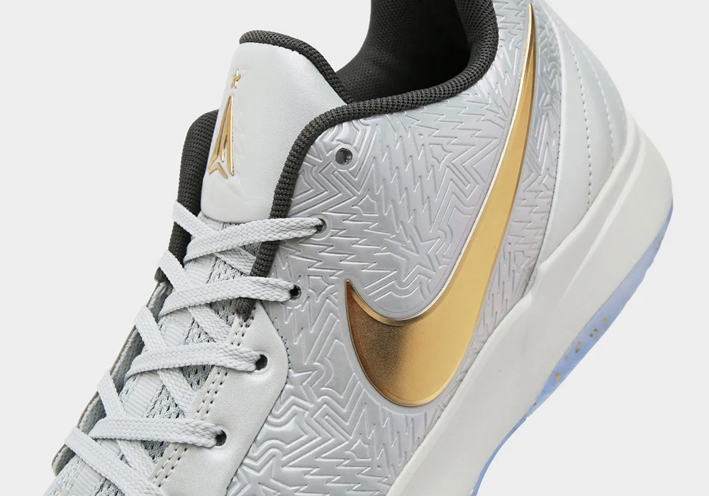 再看 PE 版本,整体采用银灰妆点,强烈的光泽感让鞋侧雪花造型更加立体。