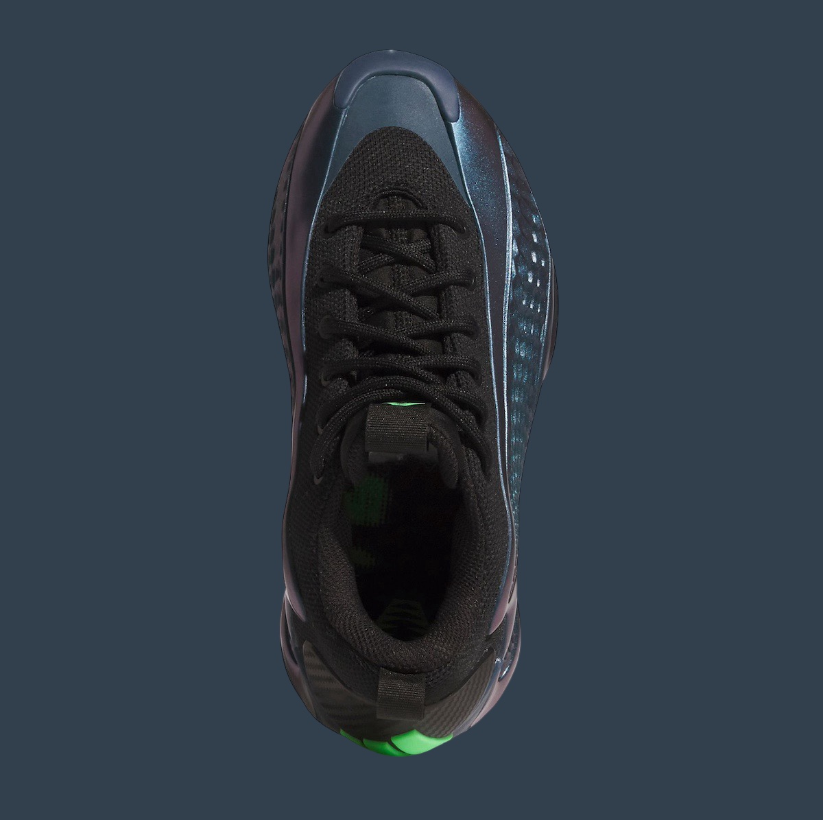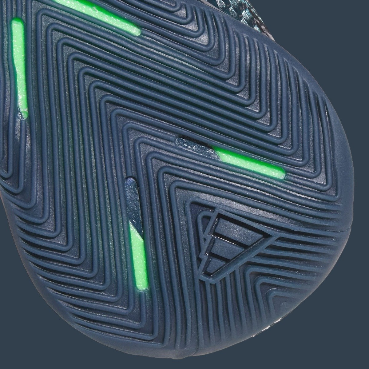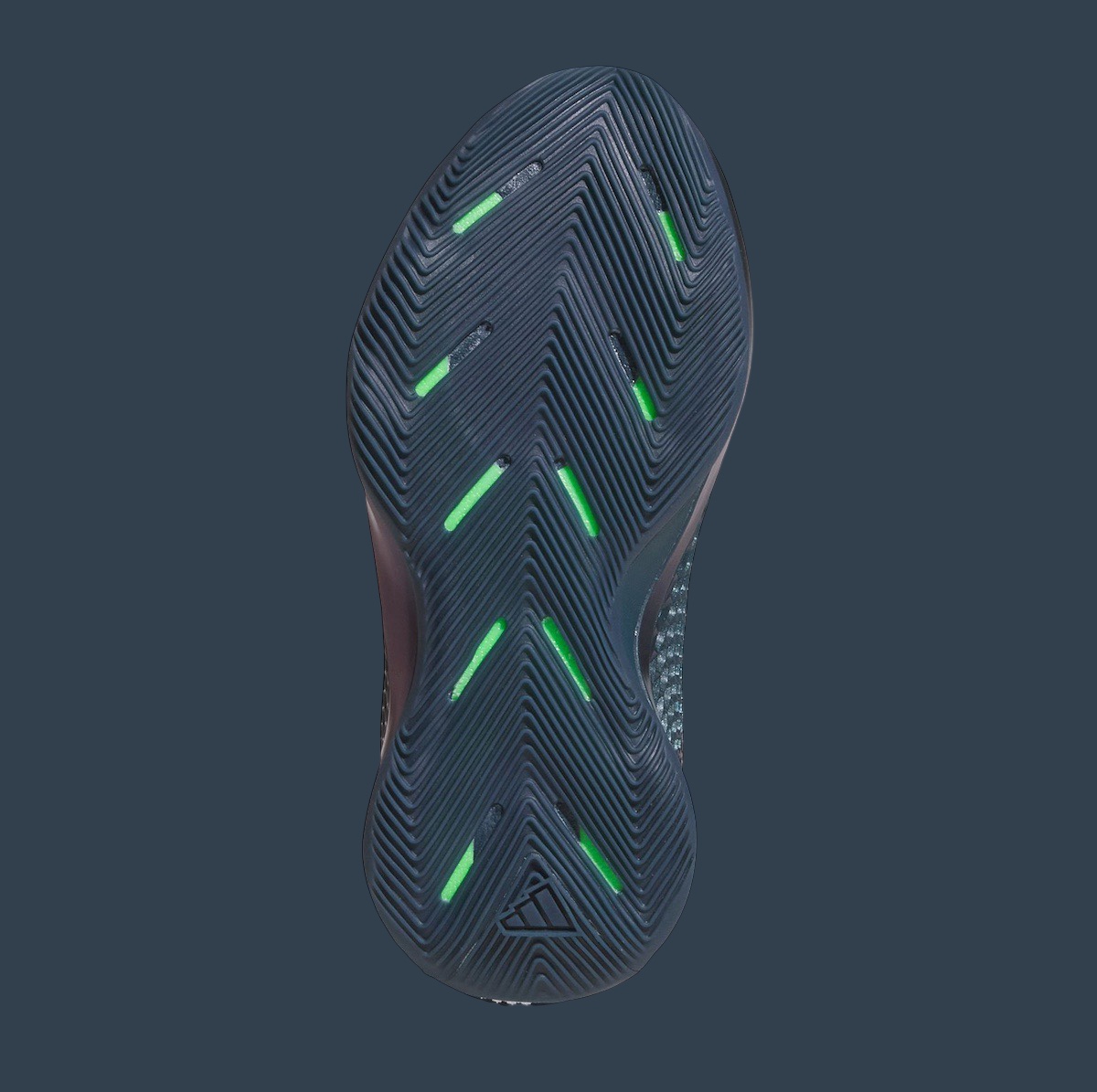 采用类似黑曜石的深蓝色覆盖鞋身,嫩绿妆点则带来醒目反差。