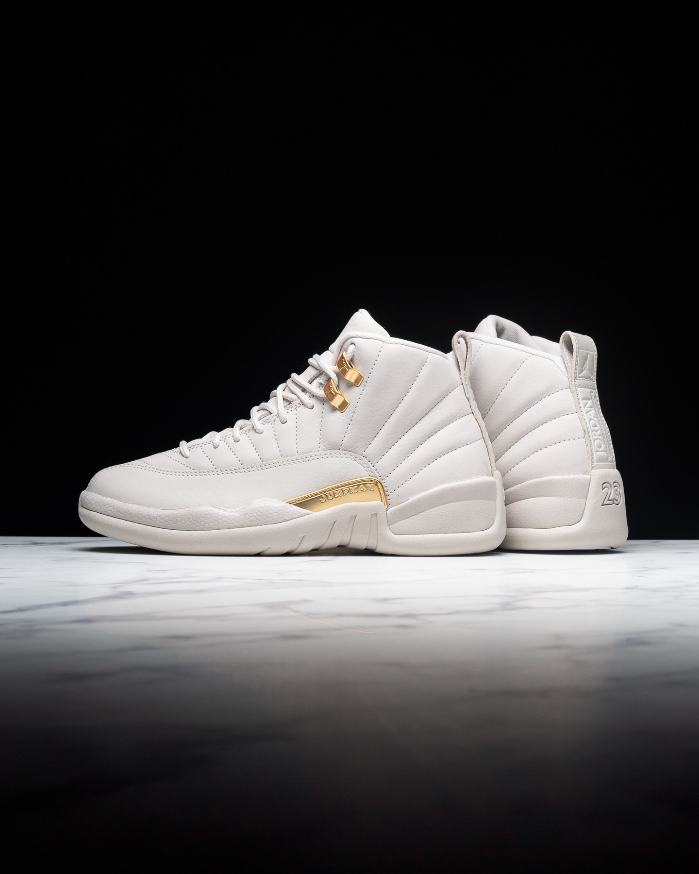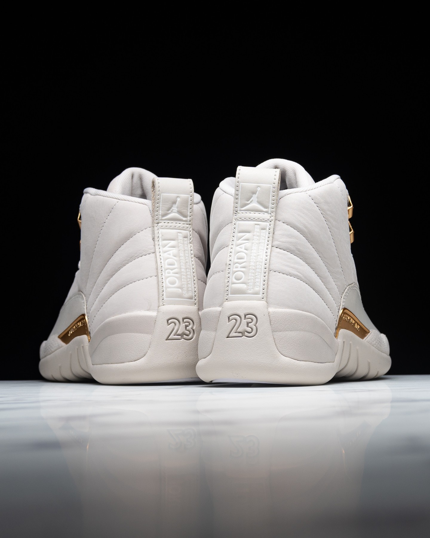 这双全新 AJ12 呈现清爽的白金装扮,鞋身各处也均采用细腻皮革示人。