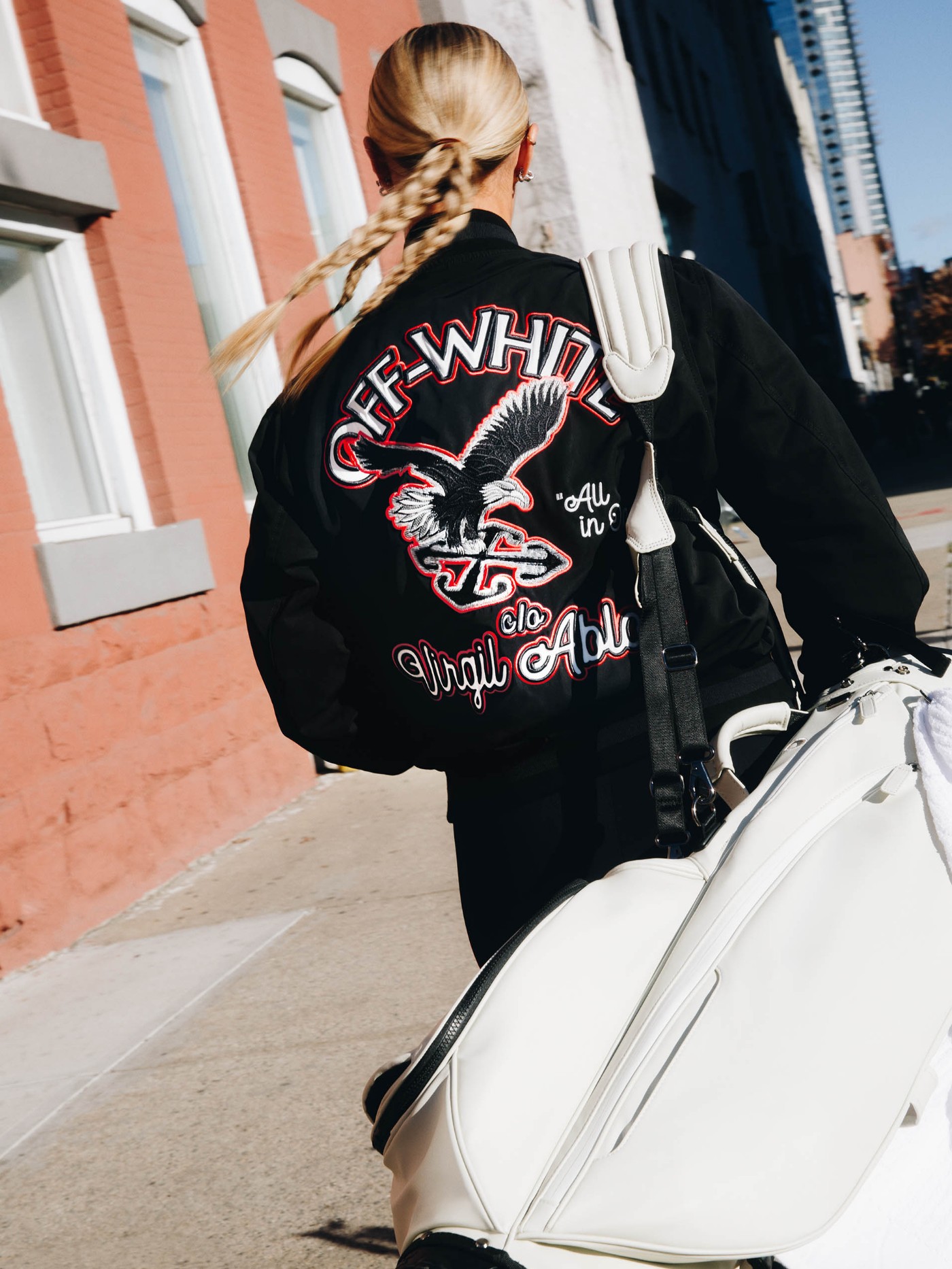 这一理念深深打动了高尔夫天才少女 Paris Hilinski,并激发她设计出自己的定制高尔夫服饰——从钉鞋到遮阳帽、裙子和 T 恤,均重新诠释了 Off-White™ 的经典设计。