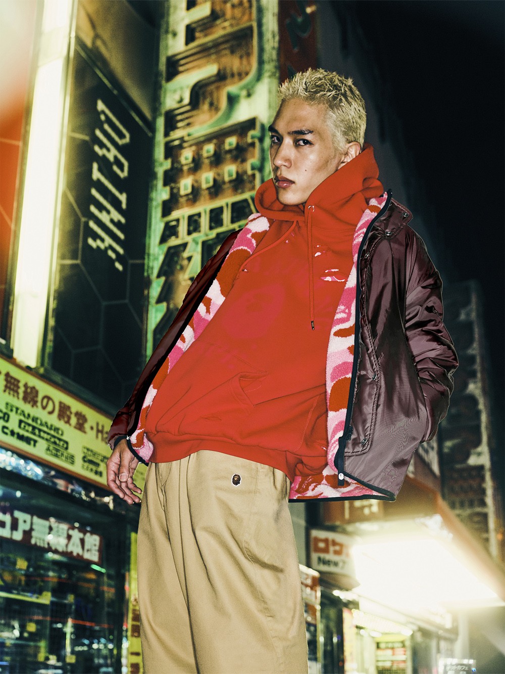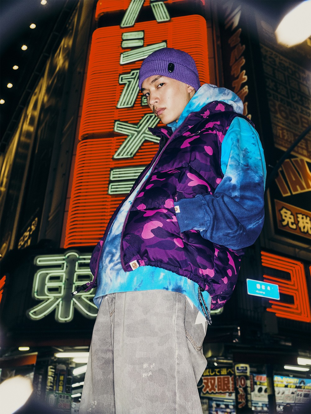 BAPE® 以经典迷彩外套和 BAPE STA™ ICON 新鞋型为高光演绎 2024 冬装时尚大片。